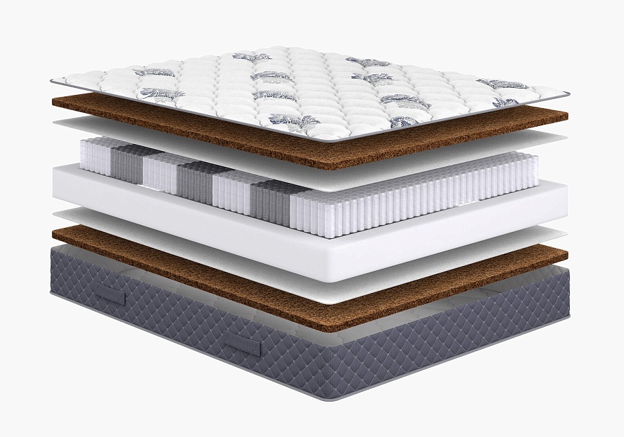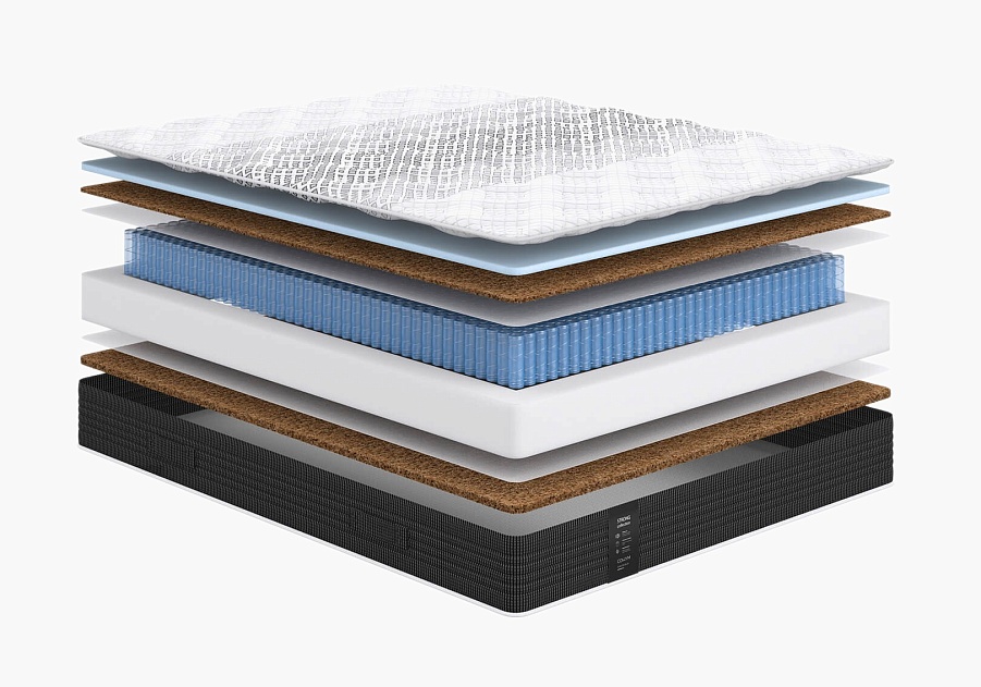 Кокосовая койра изготавливается из скорлупы кокоса. Материал воздухопроницаемый, гипоаллергенный, влагоустойчивый, экологичный. В нем не заводится плесень и клещи. Жесткость зависит от толщины койры – чем меньше ее слой, тем мягче поверхность.