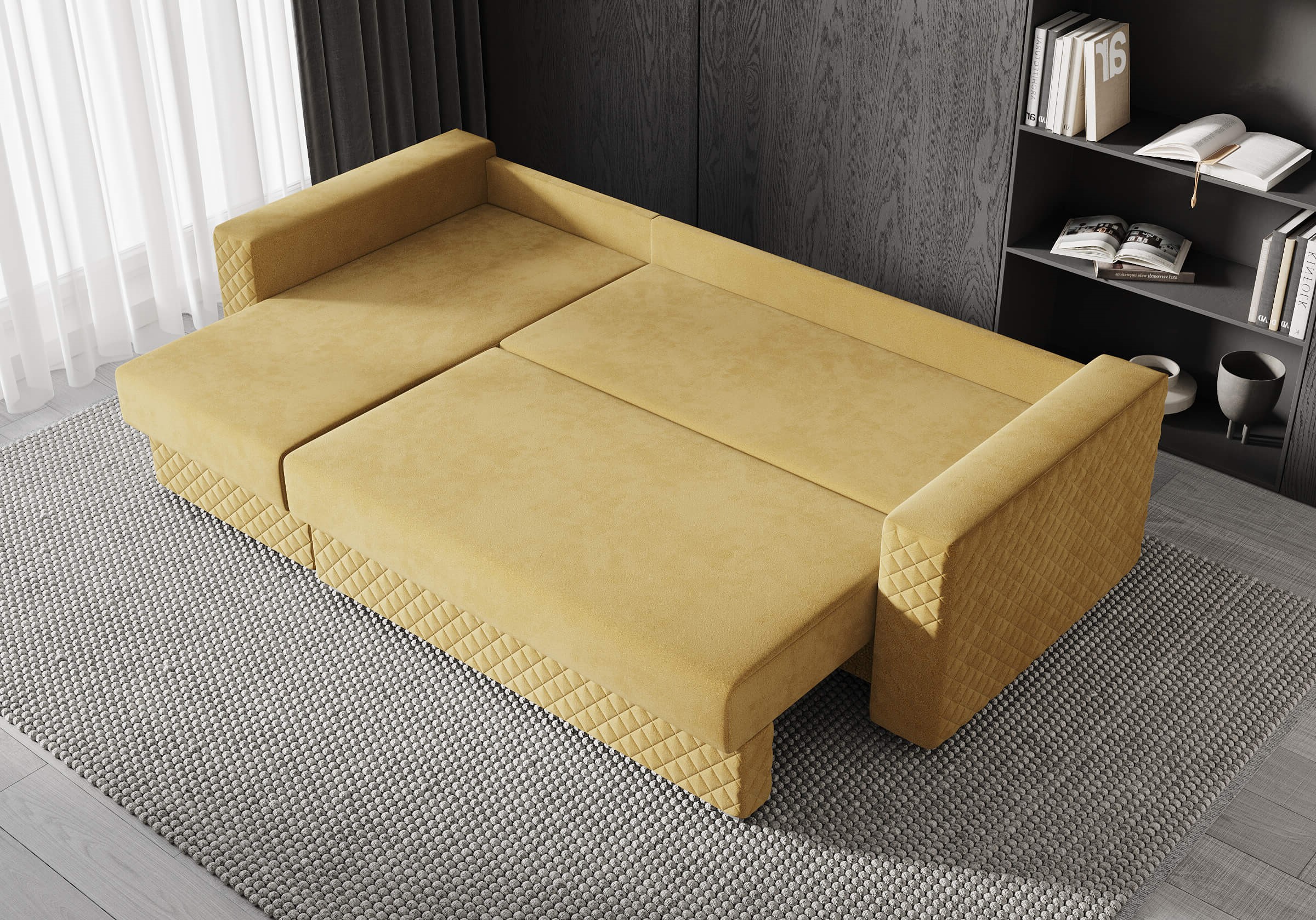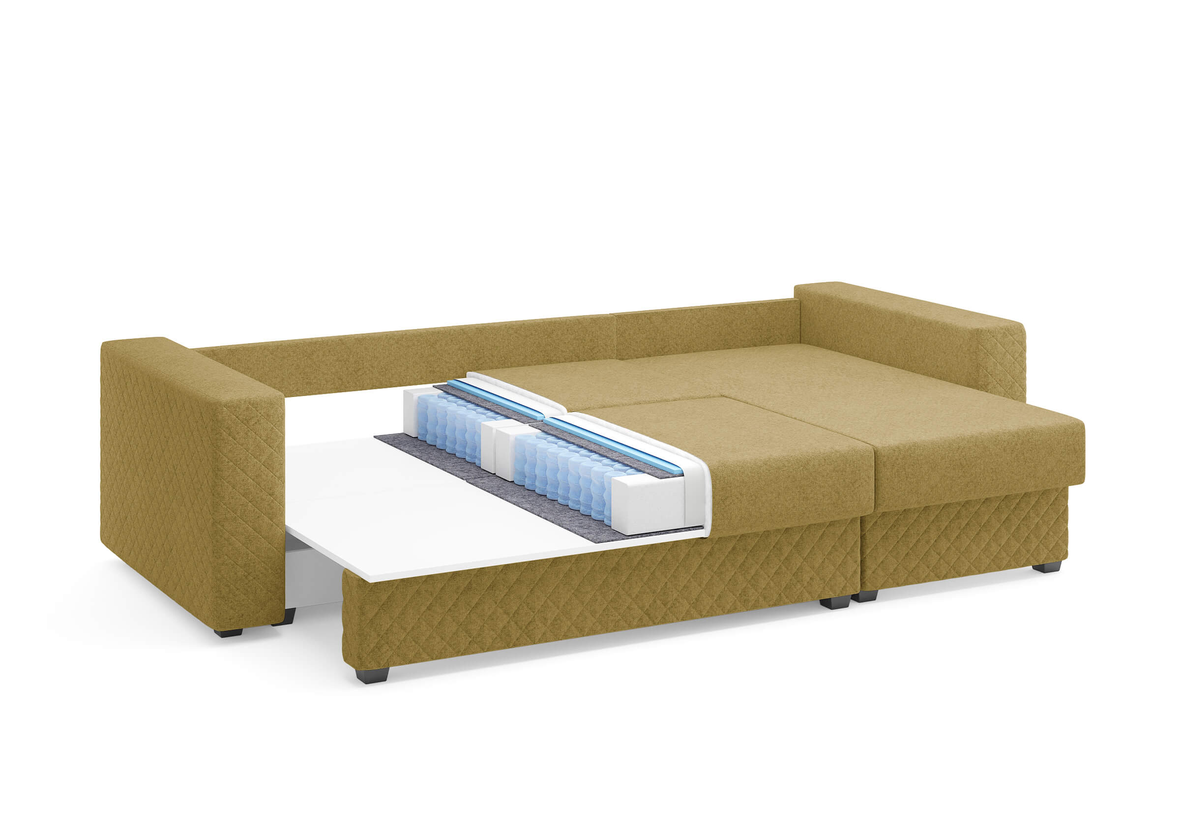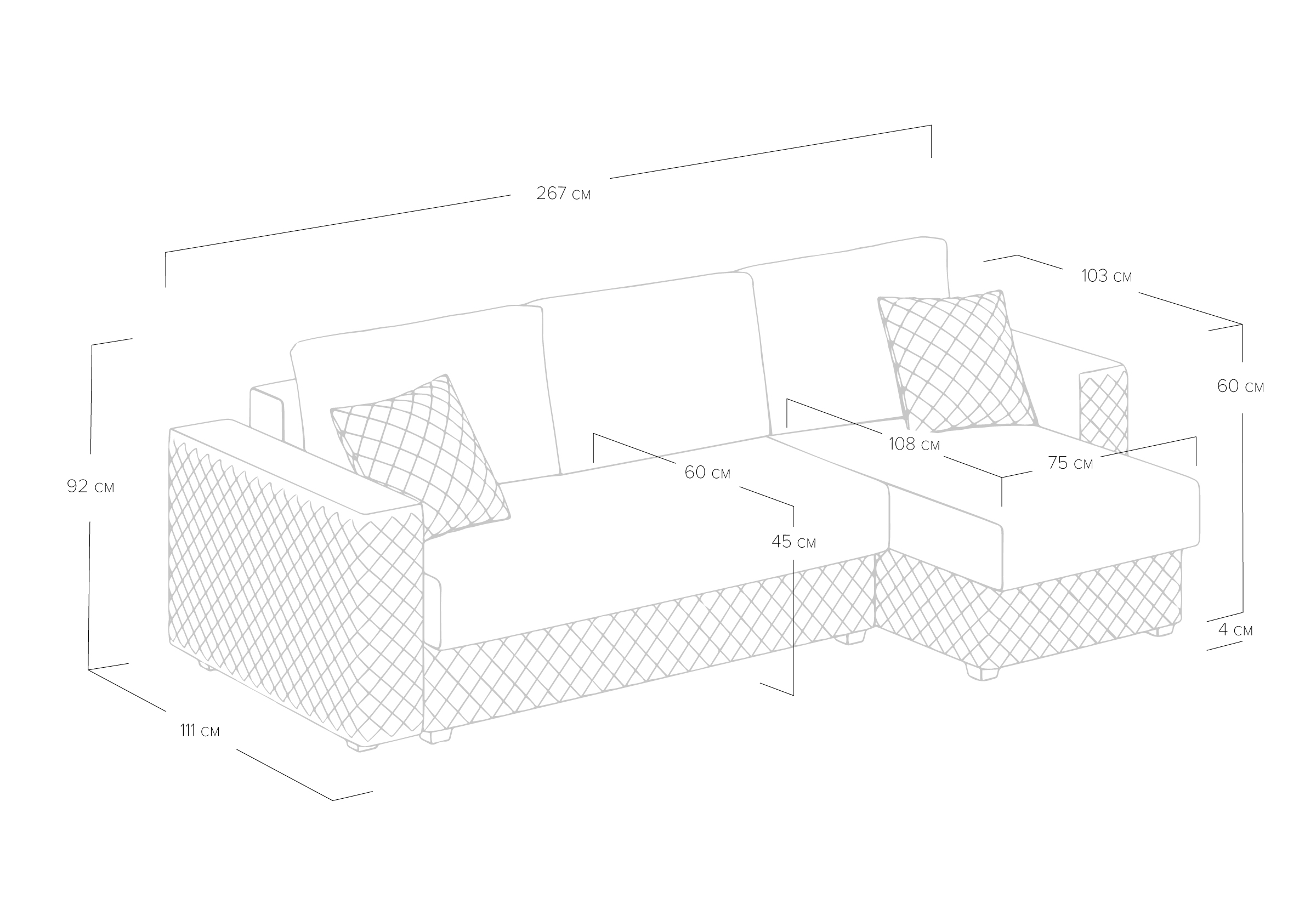 Диван оснащён современным механизмом трансформации пантограф, который обеспечивает лёгкость и удобство в использовании. В его основе лежит ортопедический матрас с независимым пружинным блоком, что гарантирует комфортный отдых и здоровый сон. Удобная глубина и высота сидения способствуют повседневному комфорту, позволяя расслабиться после долгого дня. Декоративная стёжка на подлокотниках и цоколе подчёркивает строгие, геометрические формы дивана, придавая ему стильный и современный вид. Задняя спинка дивана защищает от прикосновения со стеной во время сна, а также предотвращает возможные повреждения и загрязнения стен. В угловой секции (оттоманка) предусмотрено удобное место для хранения, что позволяет рационально использовать пространство. В комплект дивана входят две стёганные декоративные подушки, которые дополняют его внешний вид и обеспечивают комфорт. При сборке вы можете самостоятельно выбрать, с какой стороны будет расположен угол — справа или слева.
