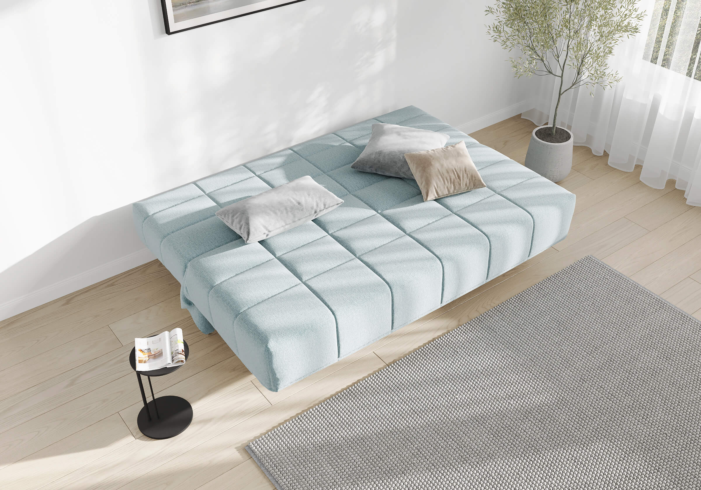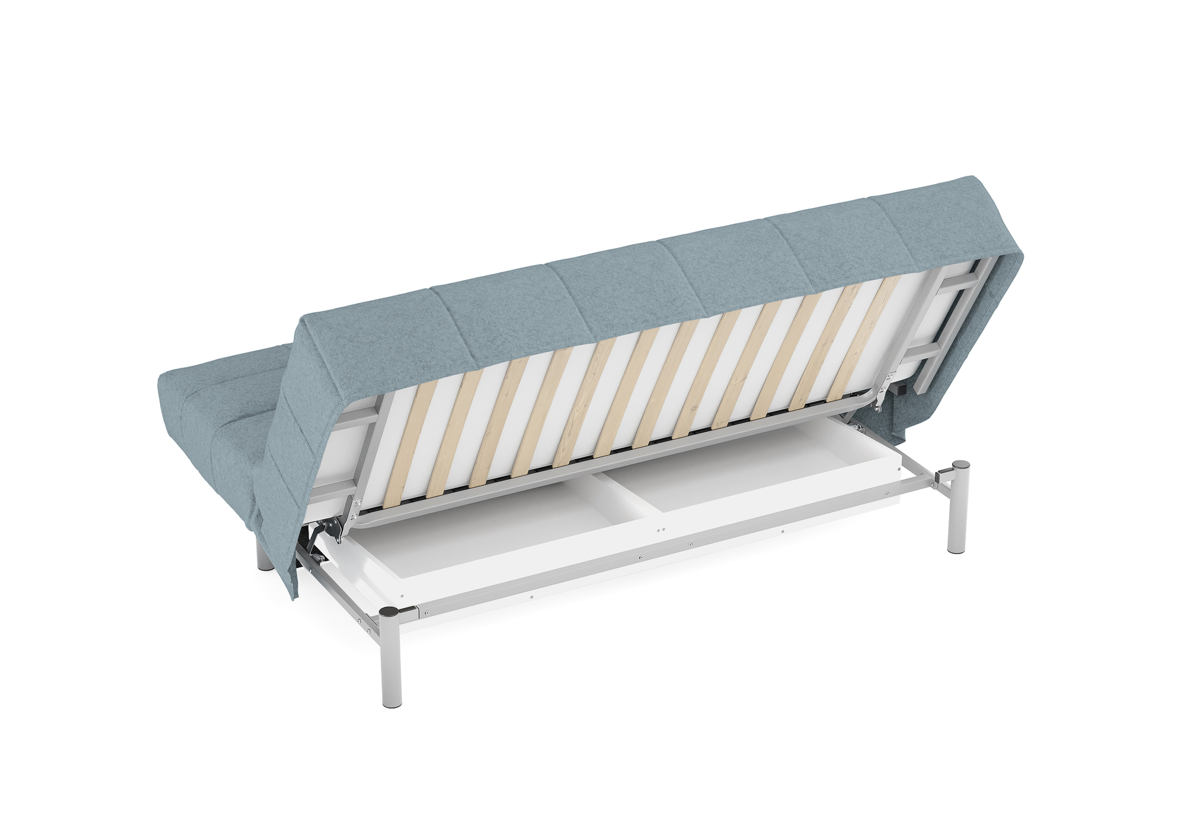 Диван для сна в современном стиле с механизмом трансформации «клик-кляк» и коробом для хранения. Основание дивана металлическое, с ламелями. Матрас анатомический с независимым пружинным блоком. Благодаря съемному чехлу с объемной стежкой в форме квадратов, диван органично впишется в современные интерьеры в стиле минимализм. Благодаря отсутствию подлокотников у дивана минимальные габариты как в сложенном, так и разложенном виде. 3 положения трансформации: диван, кровать, релакс. Диван Liberty box оборудован вместительным коробом для хранения постельного белья или аксессуаров для сна. Опоры металлические, просвет над полом способствует легкой уборке под диваном.