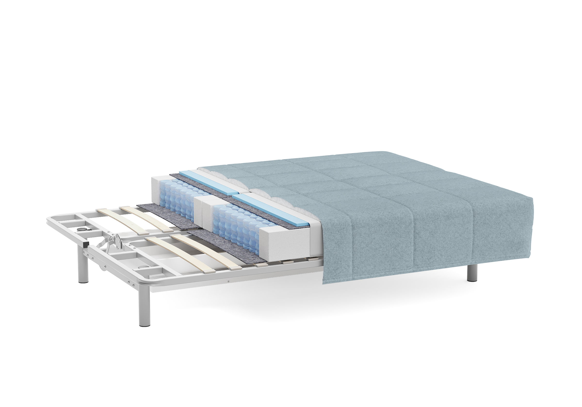 Металлическое основание имеет встроенные березовые ламели, обеспечивает равномерное распределение нагрузки.