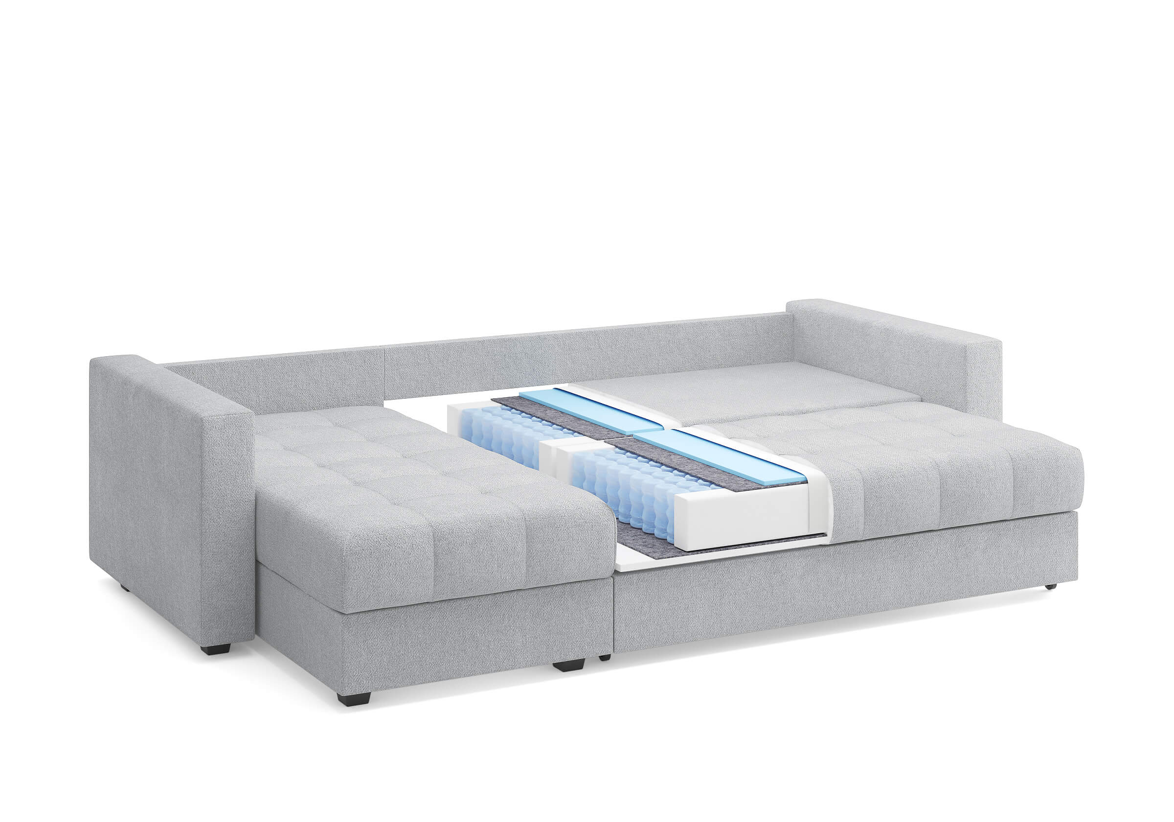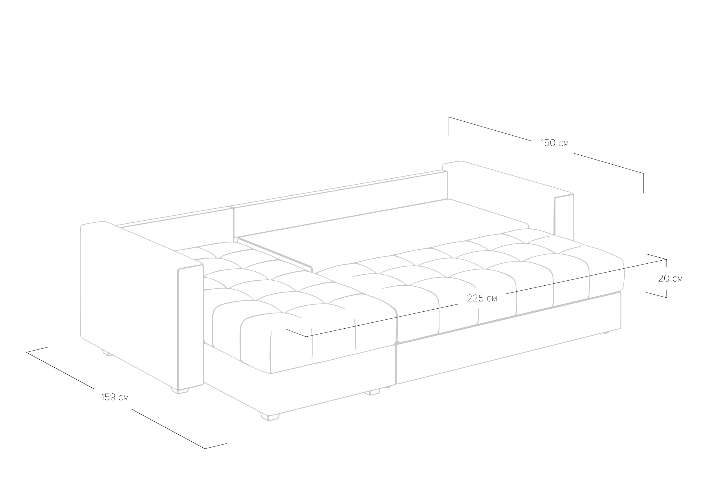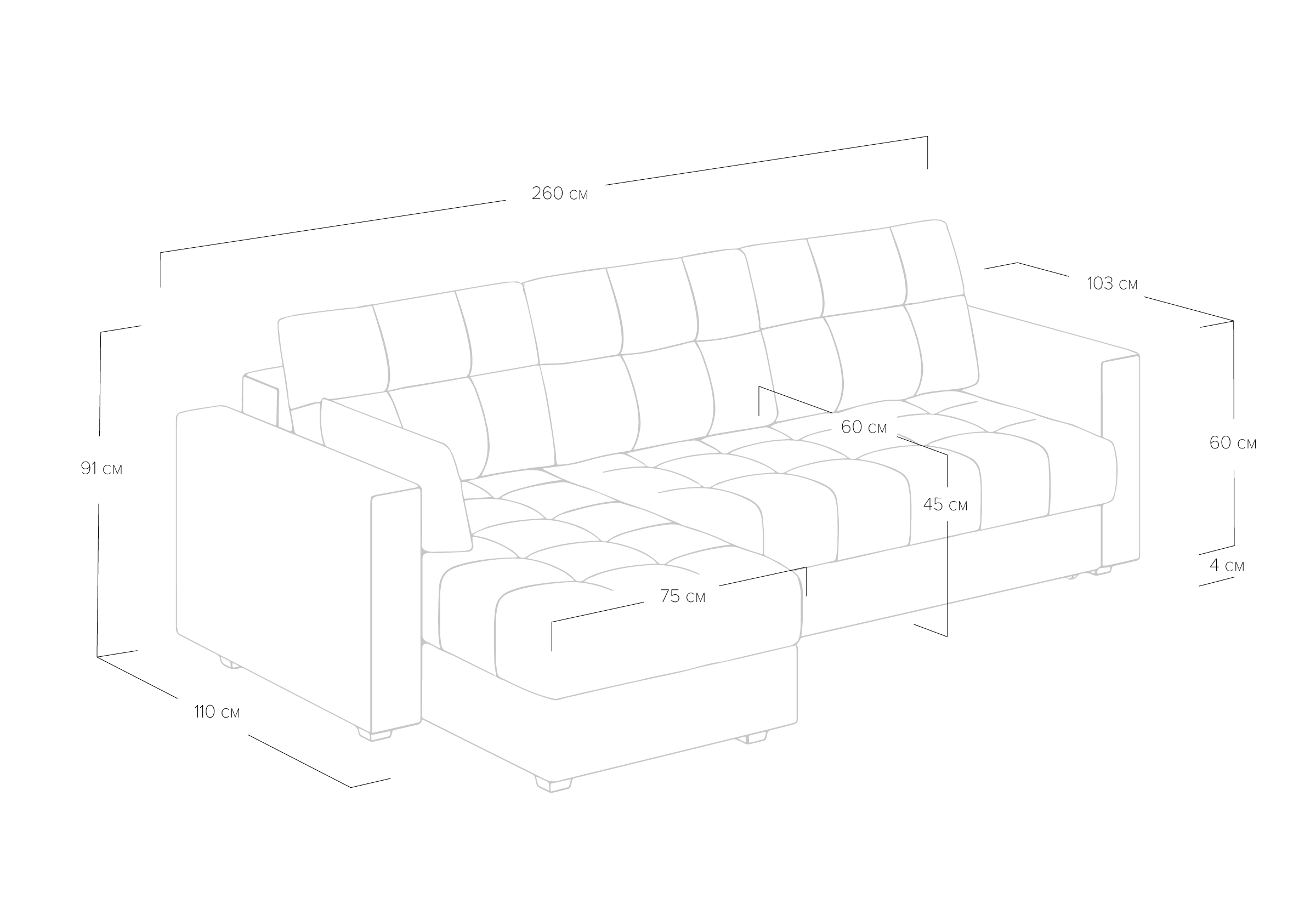 Современный и комфортный диван с механизмом трансформации "еврокнижка". Этот диван станет отличным выбором для дома, сочетая в себе стиль, функциональность и удобство. Диван имеет угловую конфигурацию, что позволяет ему идеально вписаться в любой интерьер. Угловая секция, или оттоманка, устанавливается как справа, так и слева, в зависимости от предпочтений и особенностей планировки комнаты, делая диван универсальным решением для любого пространства. Модель оснащена вместительным бельевым коробом, что позволяет эффективно использовать пространство и хранить постельные принадлежности или другие вещи. Матрас средней жесткости обеспечивает оптимальную поддержку и комфорт во время сна, что важно для ежедневного использования. Задняя спинка дивана защищает от прикосновения со стеной, предотвращая возможные повреждения и загрязнения. В комплект дивана входит декоративная подушка размером 30x50 см, которая добавляет уют и завершает образ интерьера.
