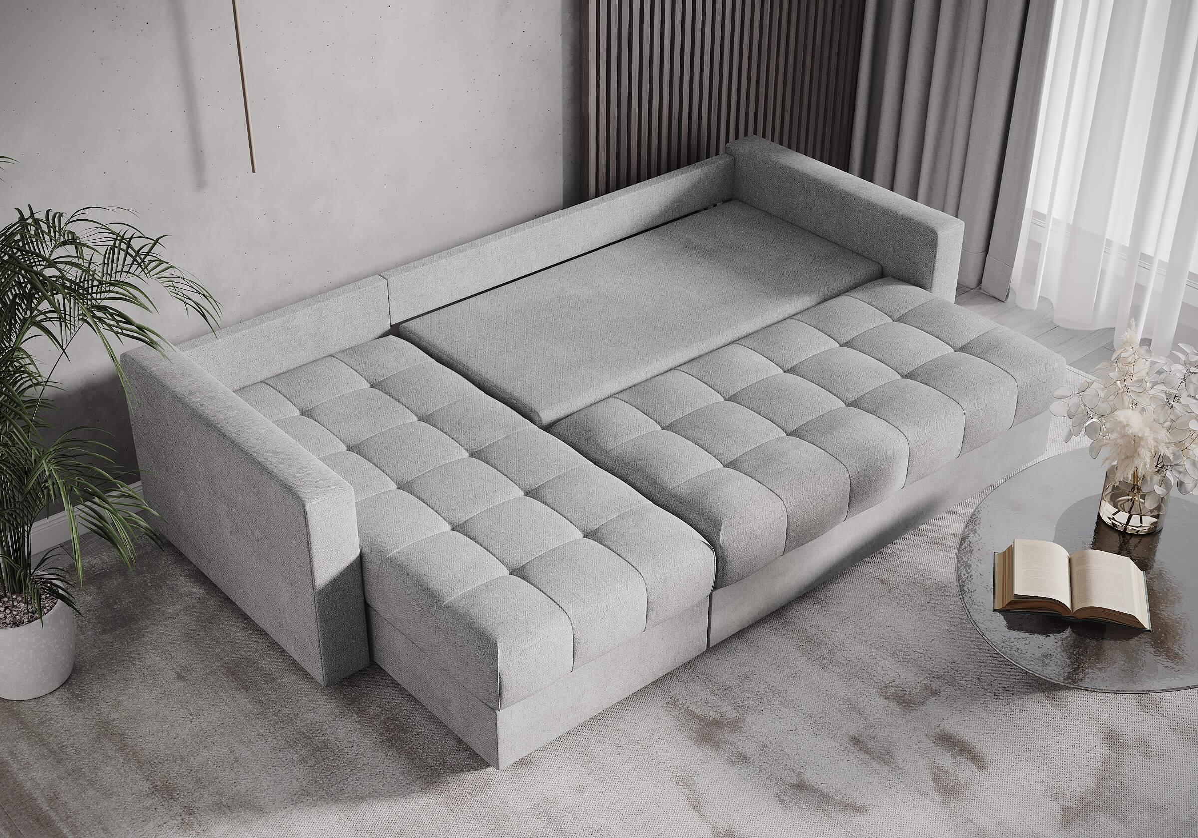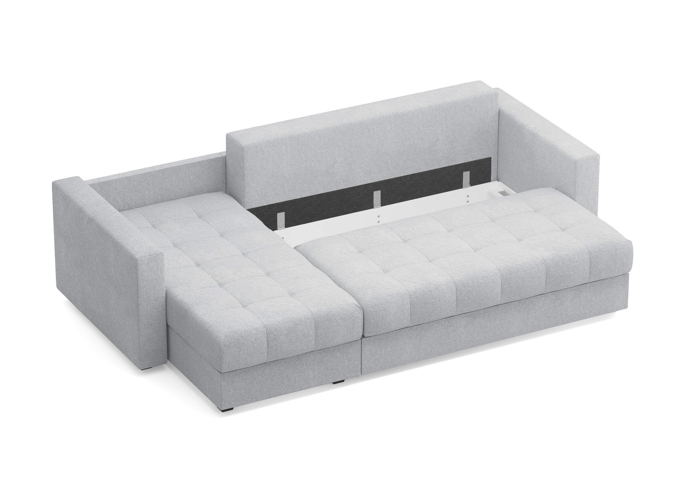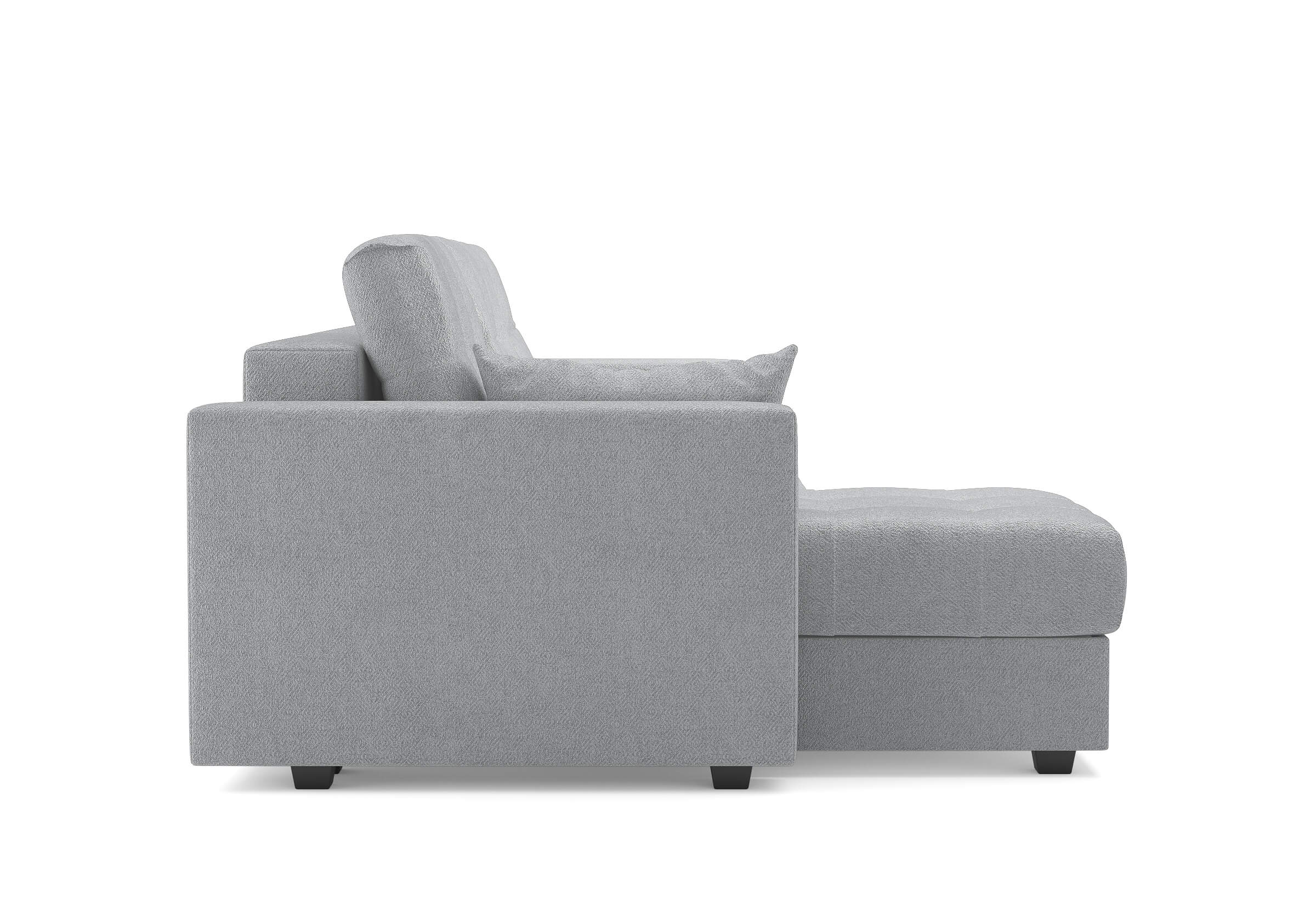 Современный и комфортный диван с механизмом трансформации "еврокнижка". Этот диван станет отличным выбором для дома, сочетая в себе стиль, функциональность и удобство. Диван имеет угловую конфигурацию, что позволяет ему идеально вписаться в любой интерьер. Угловая секция, или оттоманка, устанавливается как справа, так и слева, в зависимости от предпочтений и особенностей планировки комнаты, делая диван универсальным решением для любого пространства. Модель оснащена вместительным бельевым коробом, что позволяет эффективно использовать пространство и хранить постельные принадлежности или другие вещи. Матрас средней жесткости обеспечивает оптимальную поддержку и комфорт во время сна, что важно для ежедневного использования. Задняя спинка дивана защищает от прикосновения со стеной, предотвращая возможные повреждения и загрязнения. В комплект дивана входит декоративная подушка размером 30x50 см, которая добавляет уют и завершает образ интерьера.