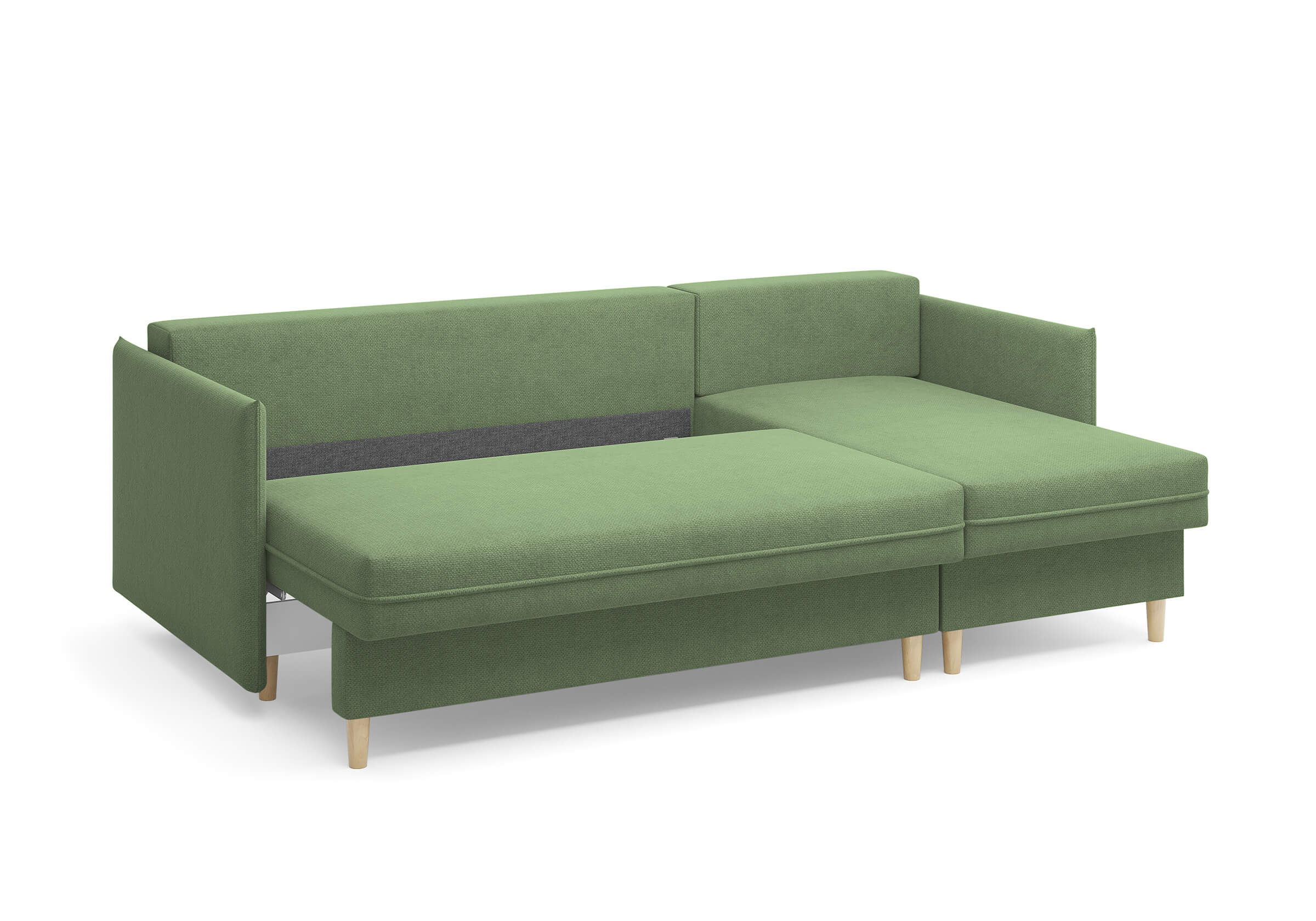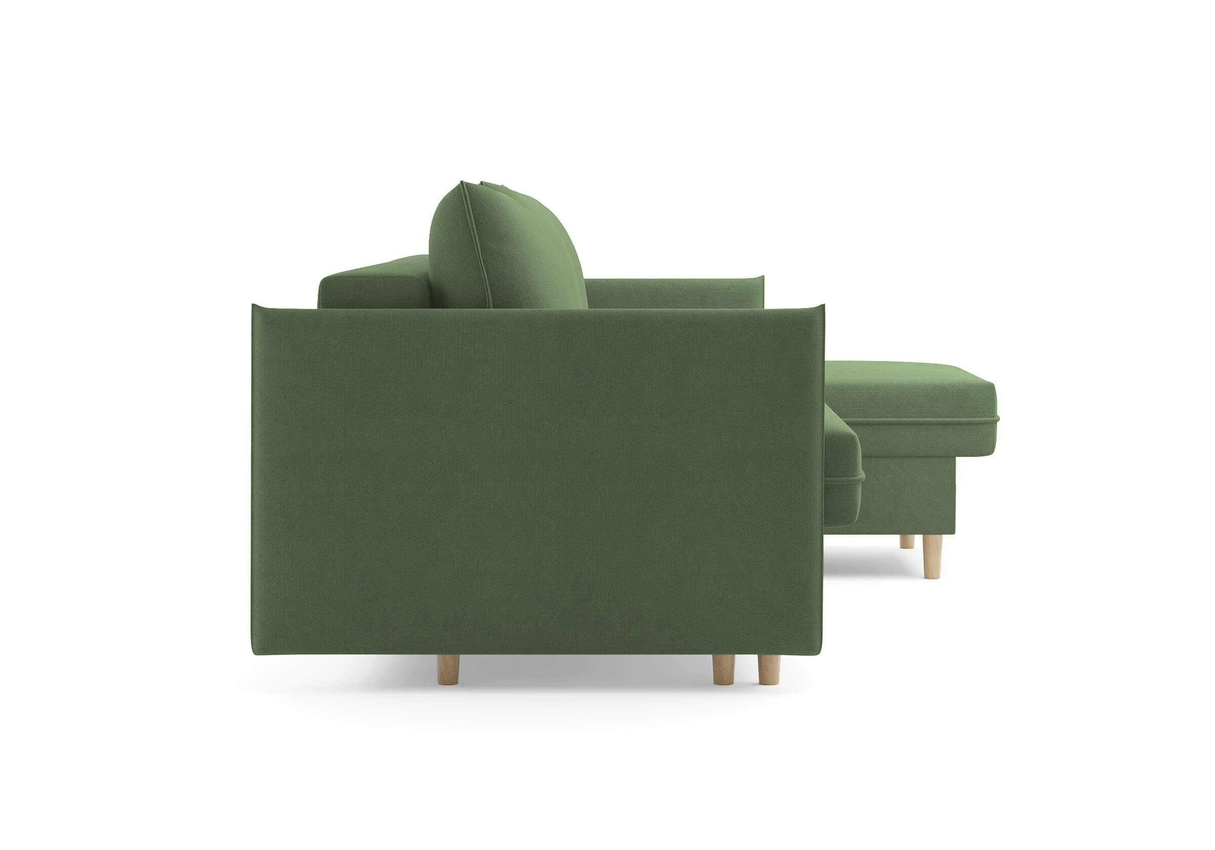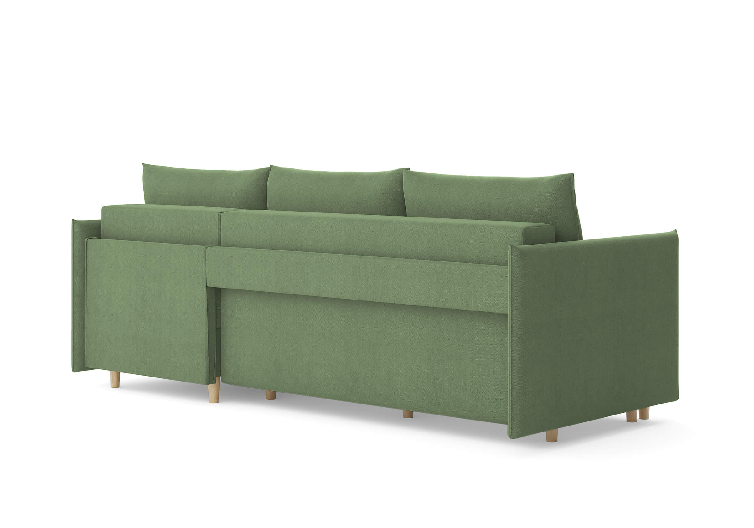 Угловой диван Rain — это идеальное сочетание лаконичного дизайна, продуманной эргономики и непревзойденного комфорта, воплощённое в сканди стиле. Четкие геометрические линии, минималистичные подлокотники и стильные деревянные опоры создают выразительный силуэт, который станет ключевым элементом вашей гостиной. Конструкция позволяет собрать конфигурацию под ваше пространство — левую или правую, — а встроенный бельевой короб обеспечивает удобное хранение постельного белья и подушек, не занимая лишнего места. Диван не только красив, но и практичен: независимый пружинный блок в сочетании с высокоэластичной пеной в составе матраса обеспечивает комфортное место для сна и отдыха. Практичная обивка и продуманная высота спинки защитят стены, сохраняя безупречный вид вашего интерьера. Кроме того, вы можете выбрать цвет и фактуру ткани из широкой палитры, чтобы диван идеально вписался в ваш интерьер.