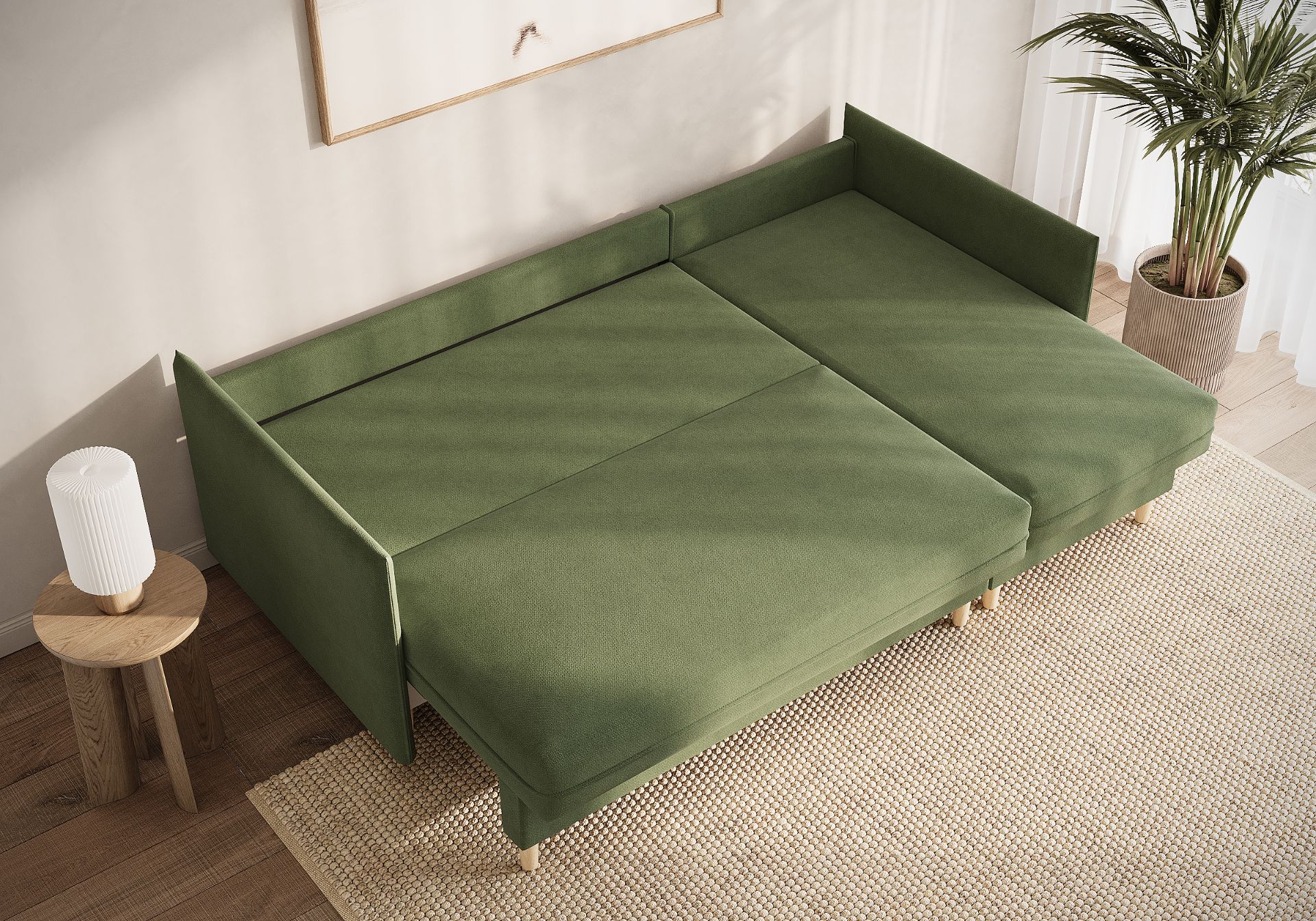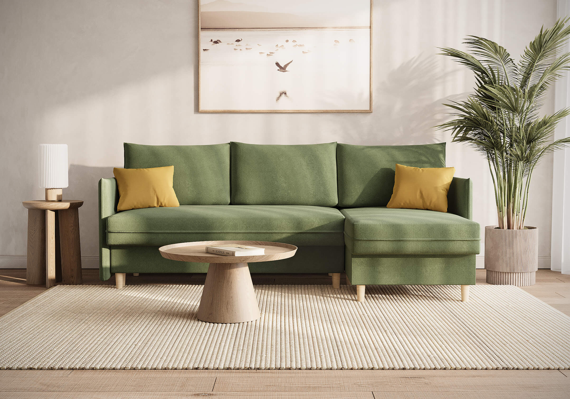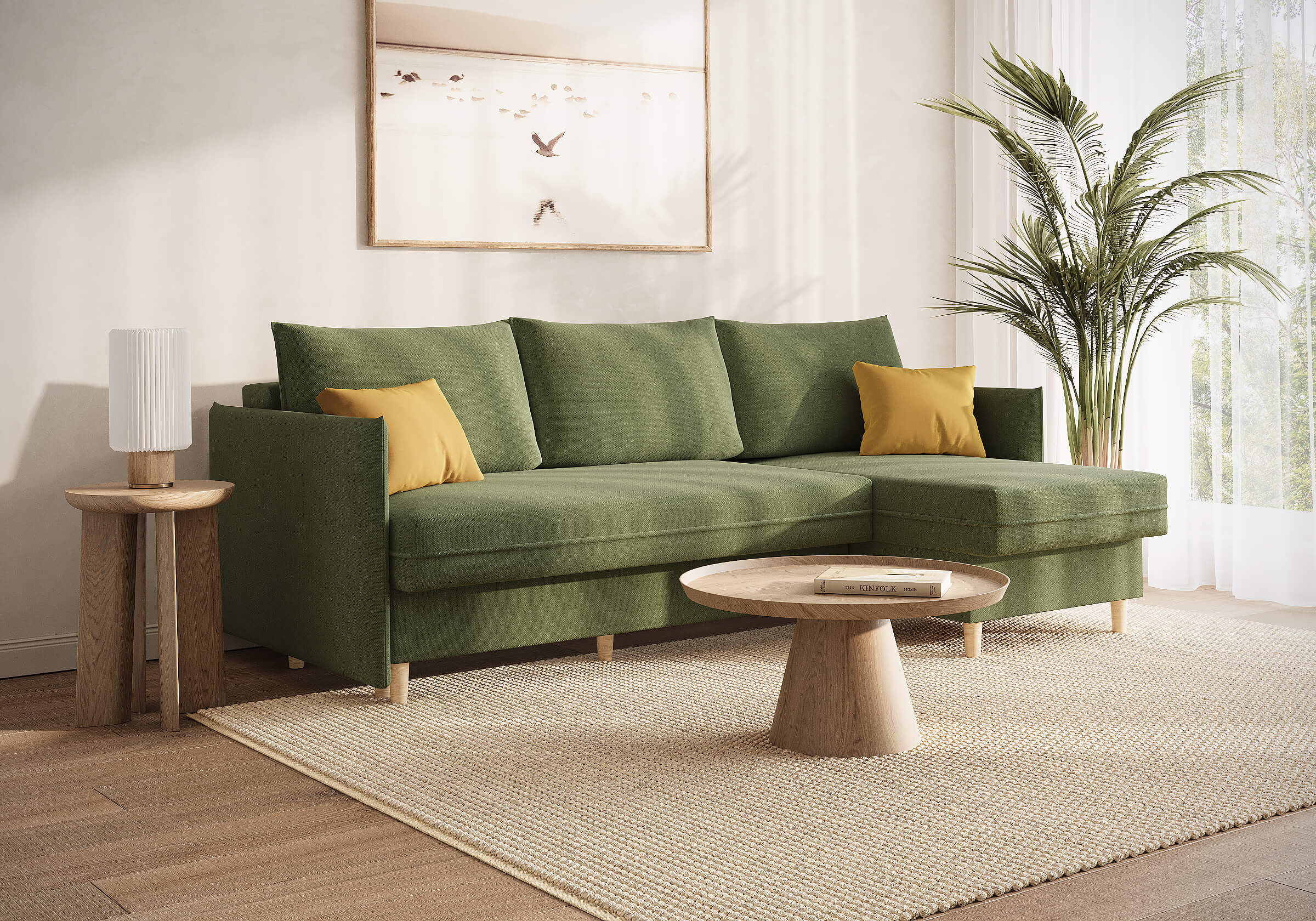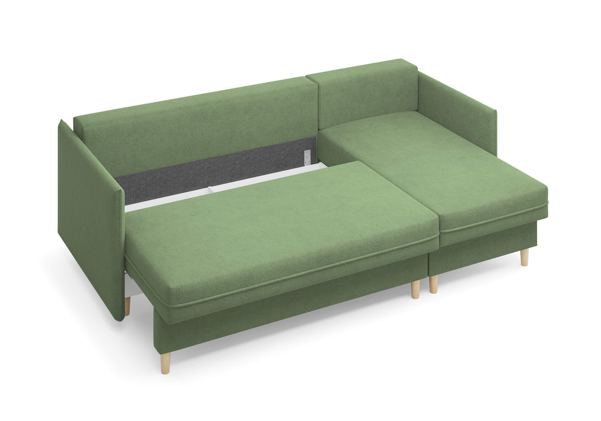 Угловой диван Rain — это идеальное сочетание лаконичного дизайна, продуманной эргономики и непревзойденного комфорта, воплощённое в сканди стиле. Четкие геометрические линии, минималистичные подлокотники и стильные деревянные опоры создают выразительный силуэт, который станет ключевым элементом вашей гостиной. Конструкция позволяет собрать конфигурацию под ваше пространство — левую или правую, — а встроенный бельевой короб обеспечивает удобное хранение постельного белья и подушек, не занимая лишнего места. Диван не только красив, но и практичен: независимый пружинный блок в сочетании с высокоэластичной пеной в составе матраса обеспечивает комфортное место для сна и отдыха. Практичная обивка и продуманная высота спинки защитят стены, сохраняя безупречный вид вашего интерьера. Кроме того, вы можете выбрать цвет и фактуру ткани из широкой палитры, чтобы диван идеально вписался в ваш интерьер.