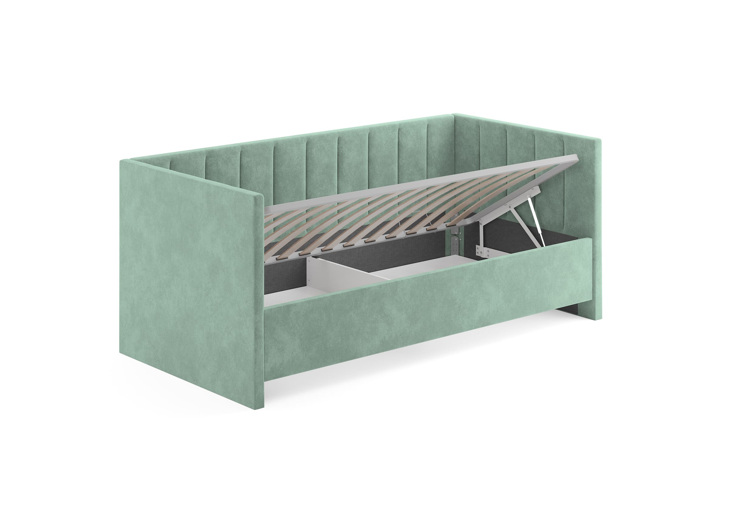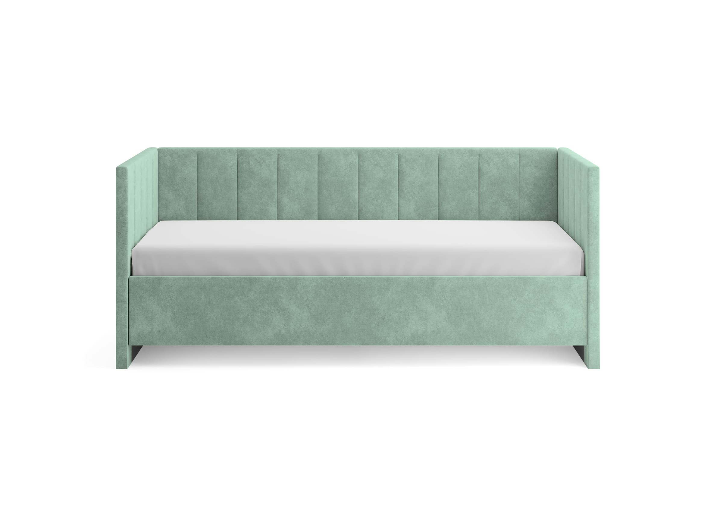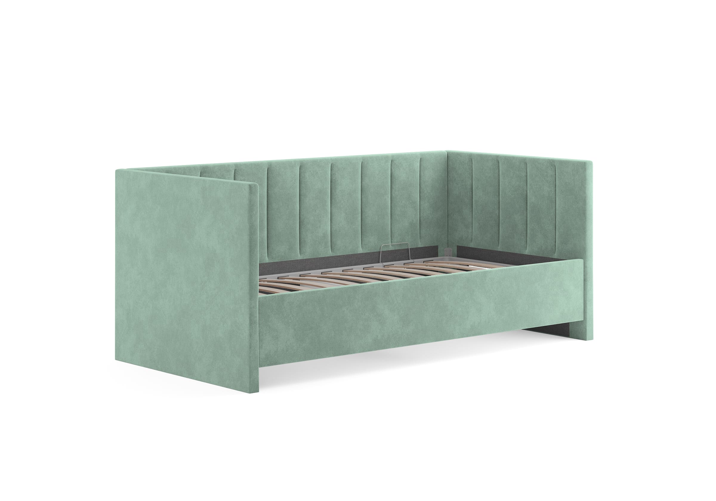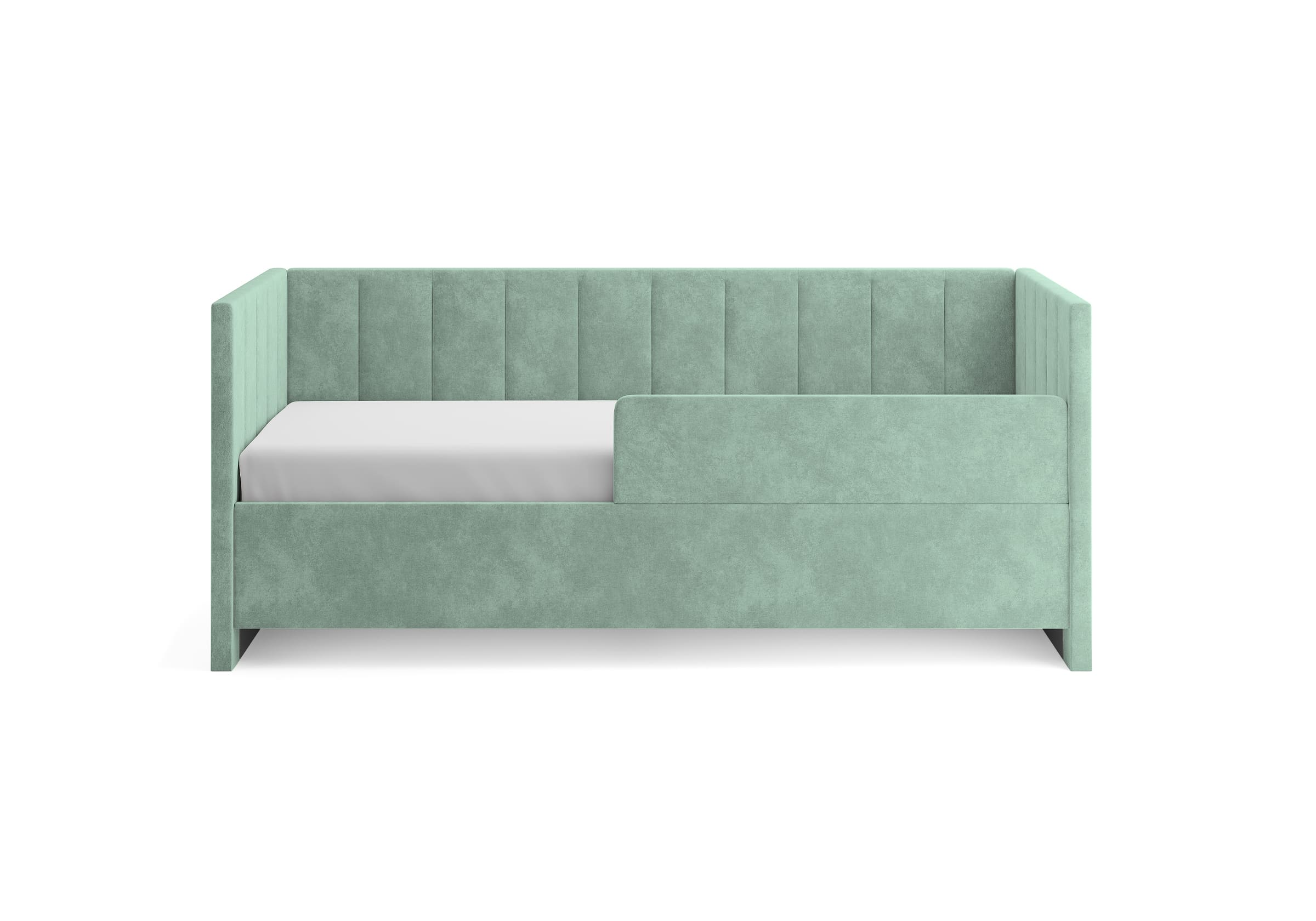 Односпальная кровать Alice с высокими боковыми спинками. Модель универсальна для квартир с небольшой площадью, детских и подростковых спален, гостевых комнат. Мягкие элементы создают атмосферу уюта, а благодаря размерному ряду, защитному бортику, множеству цветов и фактур кровать подойдет как малышам, так и подросткам, как мальчикам, так и девочкам. Защитный бортик приобретается дополнительно, легко устанавливается на левую или правую сторону кровати. Увеличенная прочность кровати достигается за счет сочетания усиленных металлических уголков, центральной царги и закладных деталей. Модель укомплектована ортопедическим основанием, при желании в нее можно установить подъемный механизм с бельевым коробом. Опоры отсутствуют, функцию опор выполняют основная и боковые спинки. Расстояние до царги способствует легкой уборке под кроватью, в том числе роботом – пылесосом. Исполнение доступно во всех видах ткани