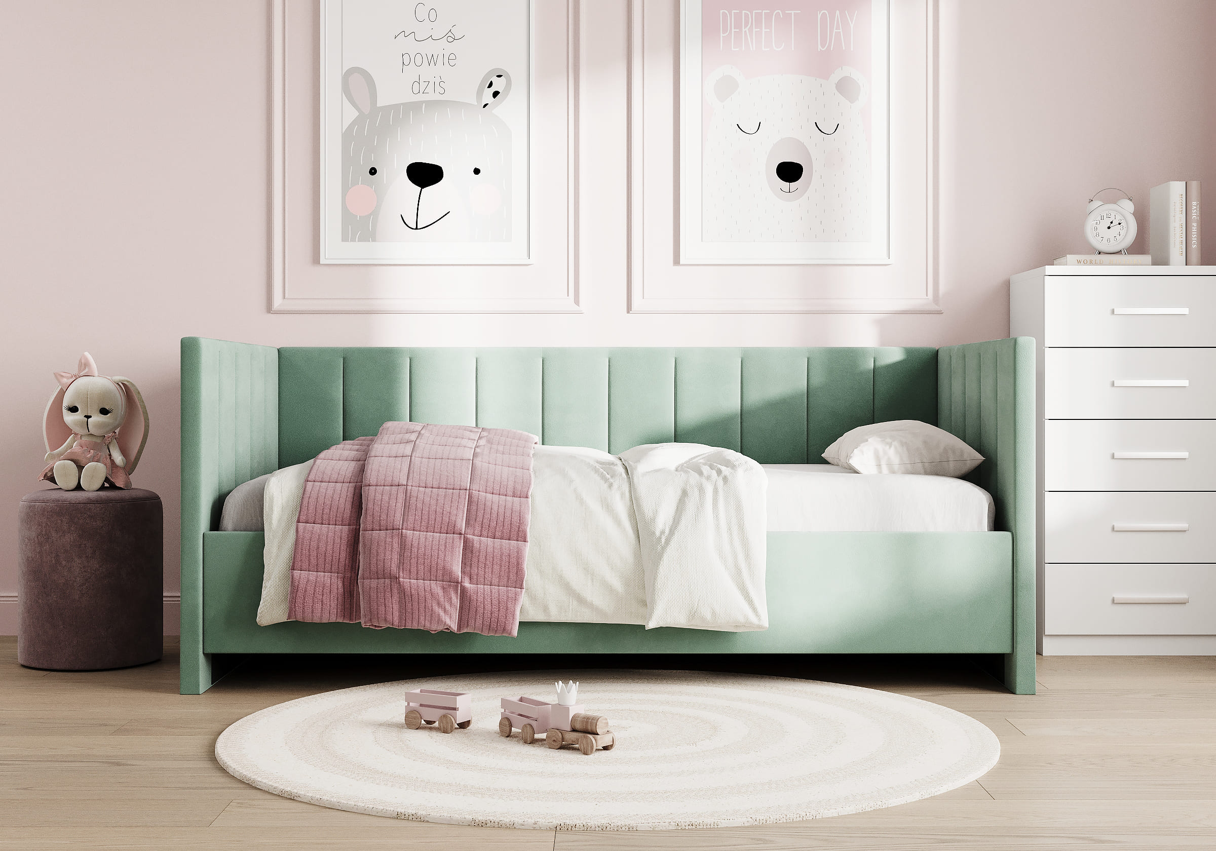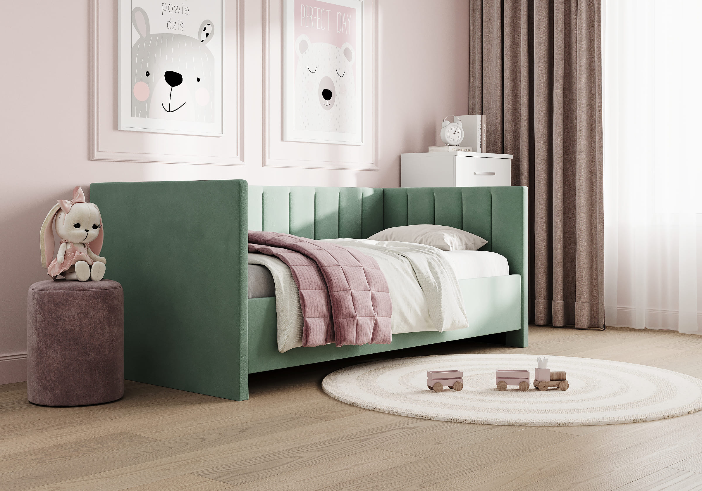 Спинки по трем сторонам кровати делают модель универсальной, дарят ощущение безопасности и уюта..