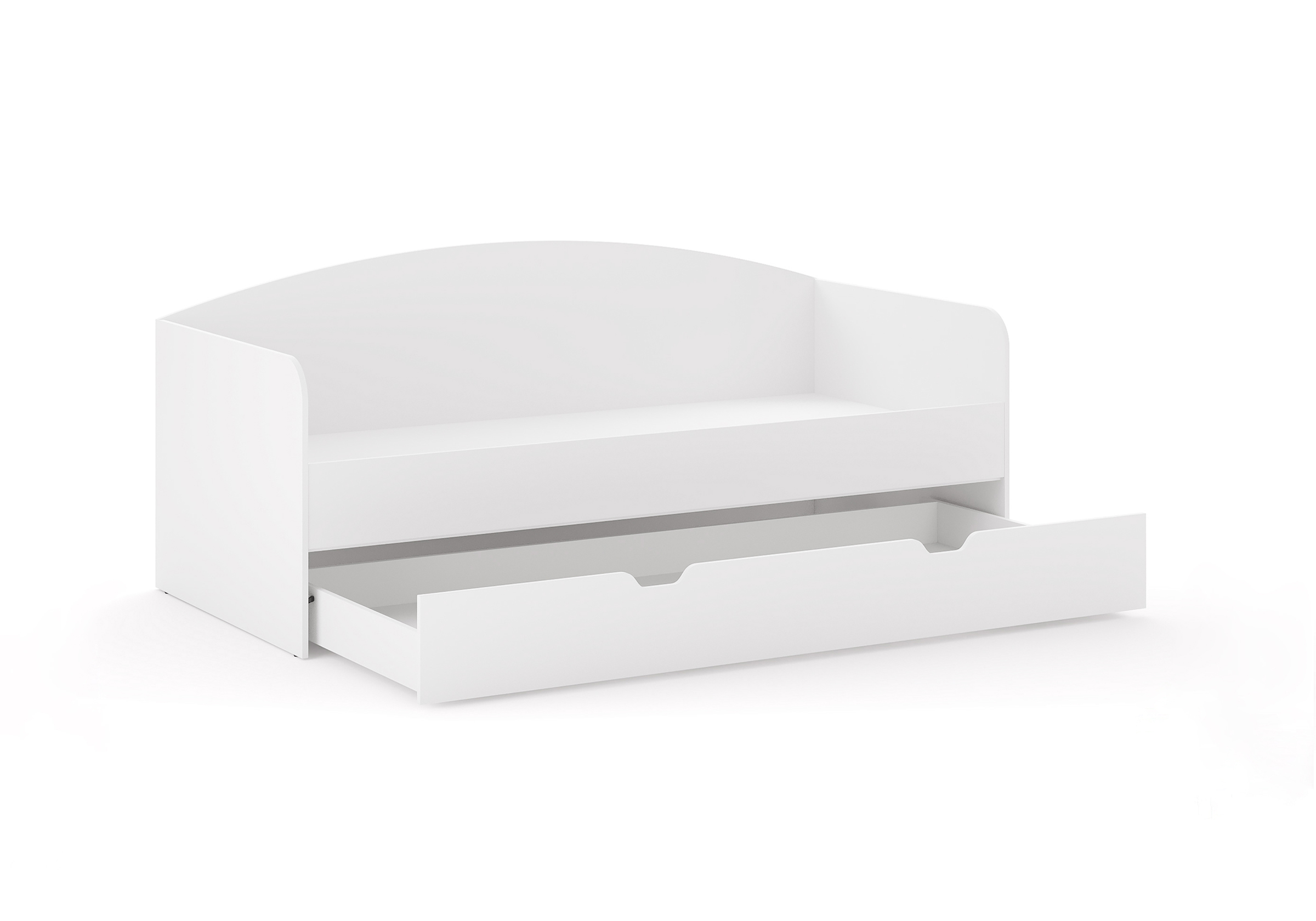 Модуль можно использовать как дополнительное спальное место или вместительный бельевой ящик. Выдвигается полностью для обеспечения уборки под кроватью.