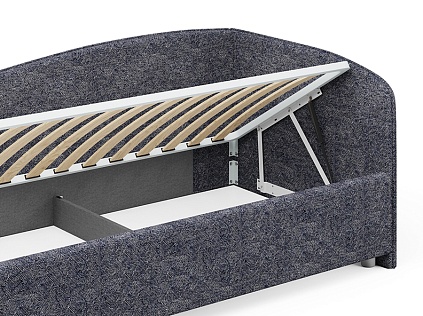Возможна установка подъемного механизма со вместительным бельевым ящиком. Дно бельевого ящика легко сдвигается для обеспечения уборки под кроватью.