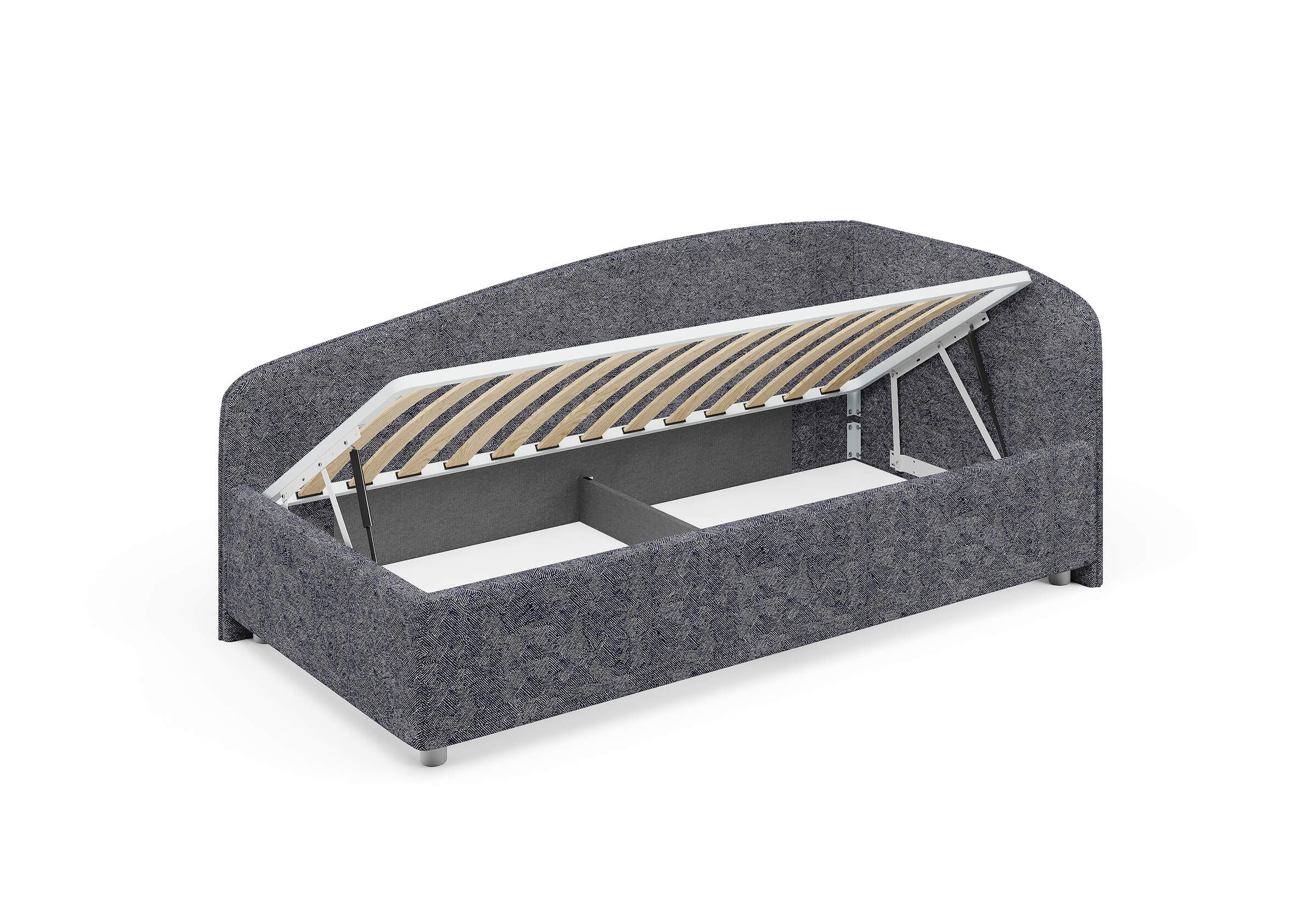 Возможна установка подъемного механизма со вместительным бельевым ящиком. Дно бельевого ящика легко сдвигается для обеспечения уборки под кроватью.