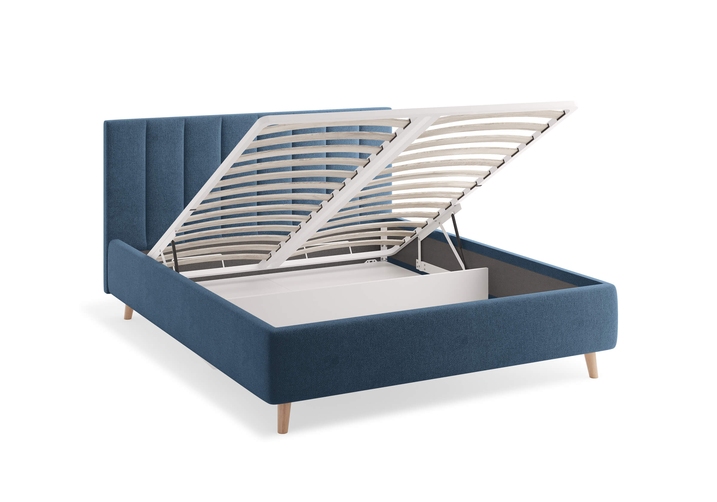 Возможна установка подъемного механизма со вместительным бельевым ящиком. Дно бельевого ящика легко сдвигается для обеспечения уборки под кроватью.