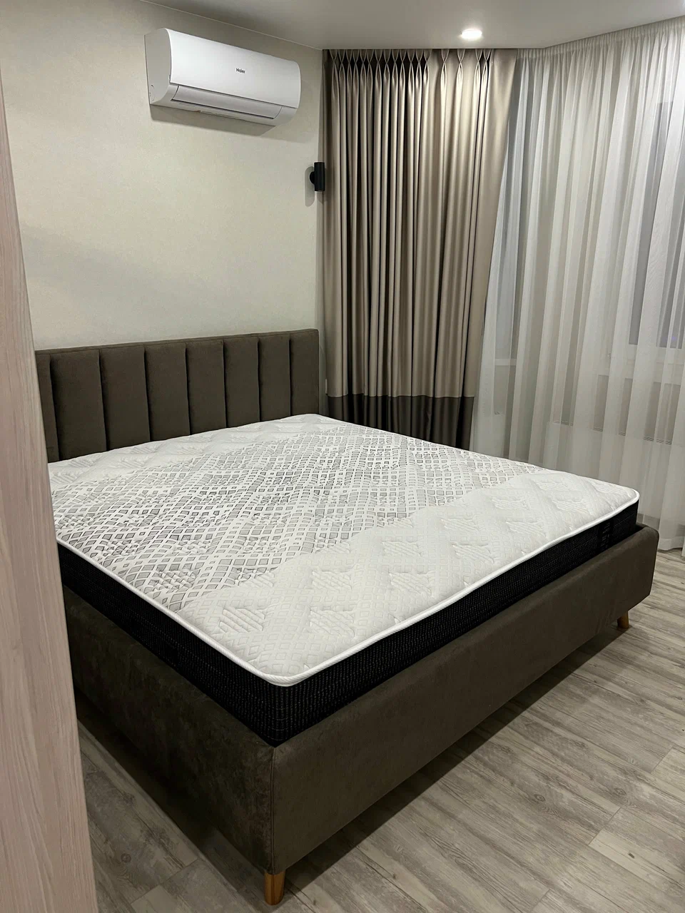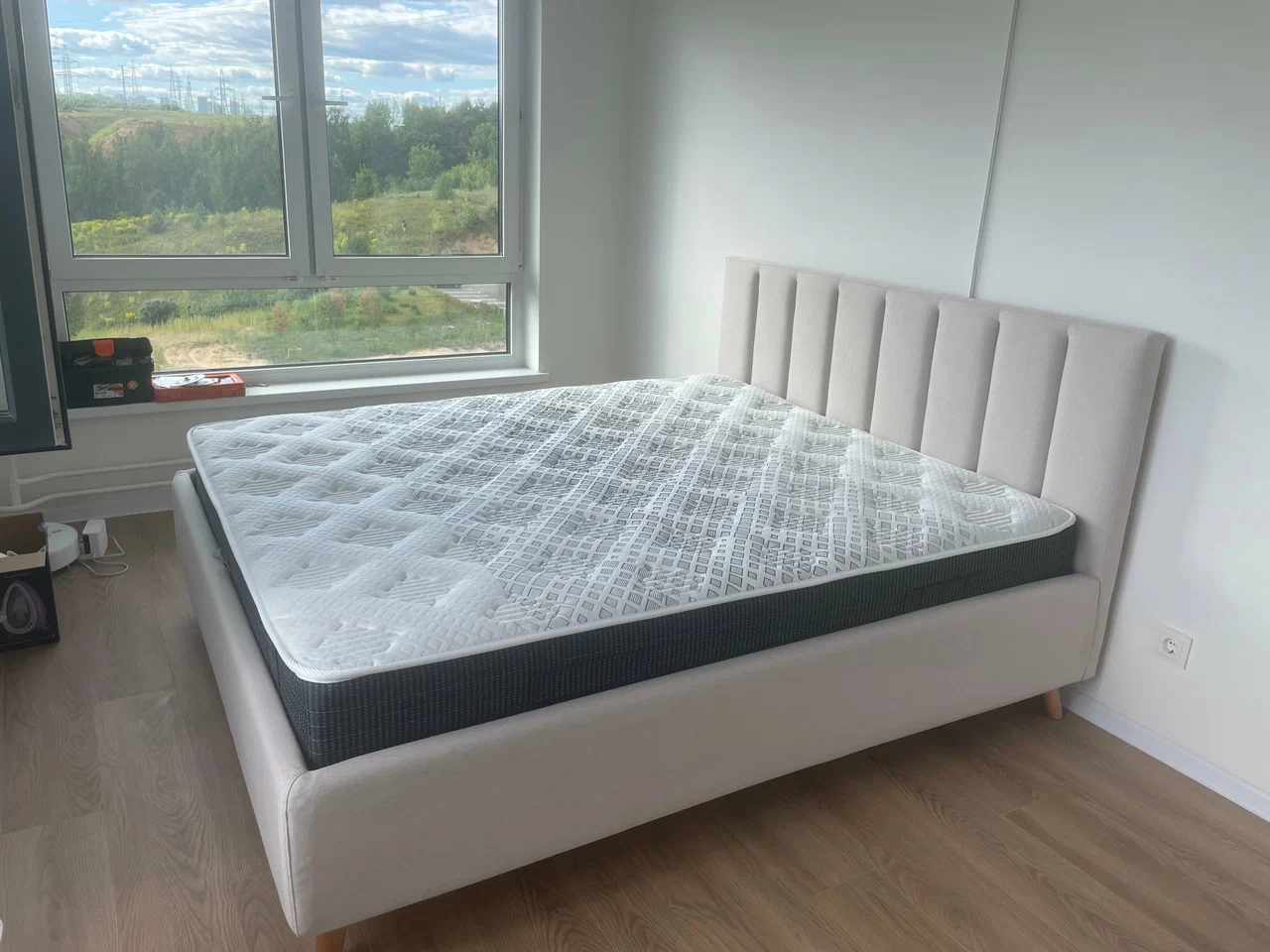 Кровать понравилась с первого взгляда! Выглядит очень современно и дорого. По качеству нареканий нет, ничего не скрипит, обивка из плотной не пачкающейся ткани. Чехлы можно снять и при необходимости постирать. Ножки оптимальной высоты, робот пылесос помещается. Спим с мужем на кровати две недели, всем довольны.
