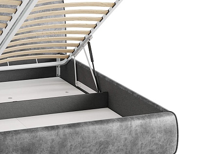 Возможность установки подъемного механизма со вместительным бельевым ящиком. Дно бельевого ящика легко сдвигается для обеспечения уборки под кроватью.