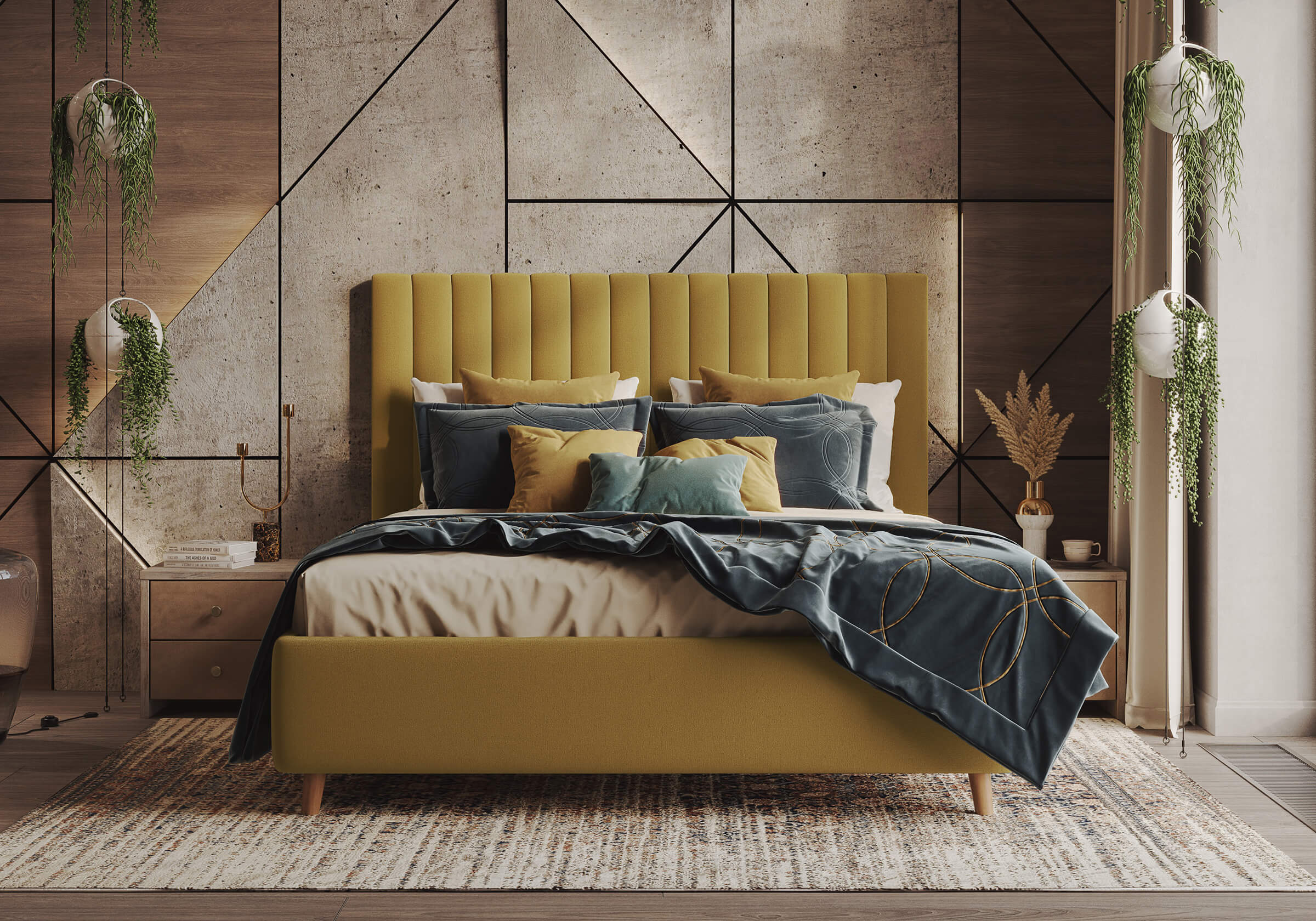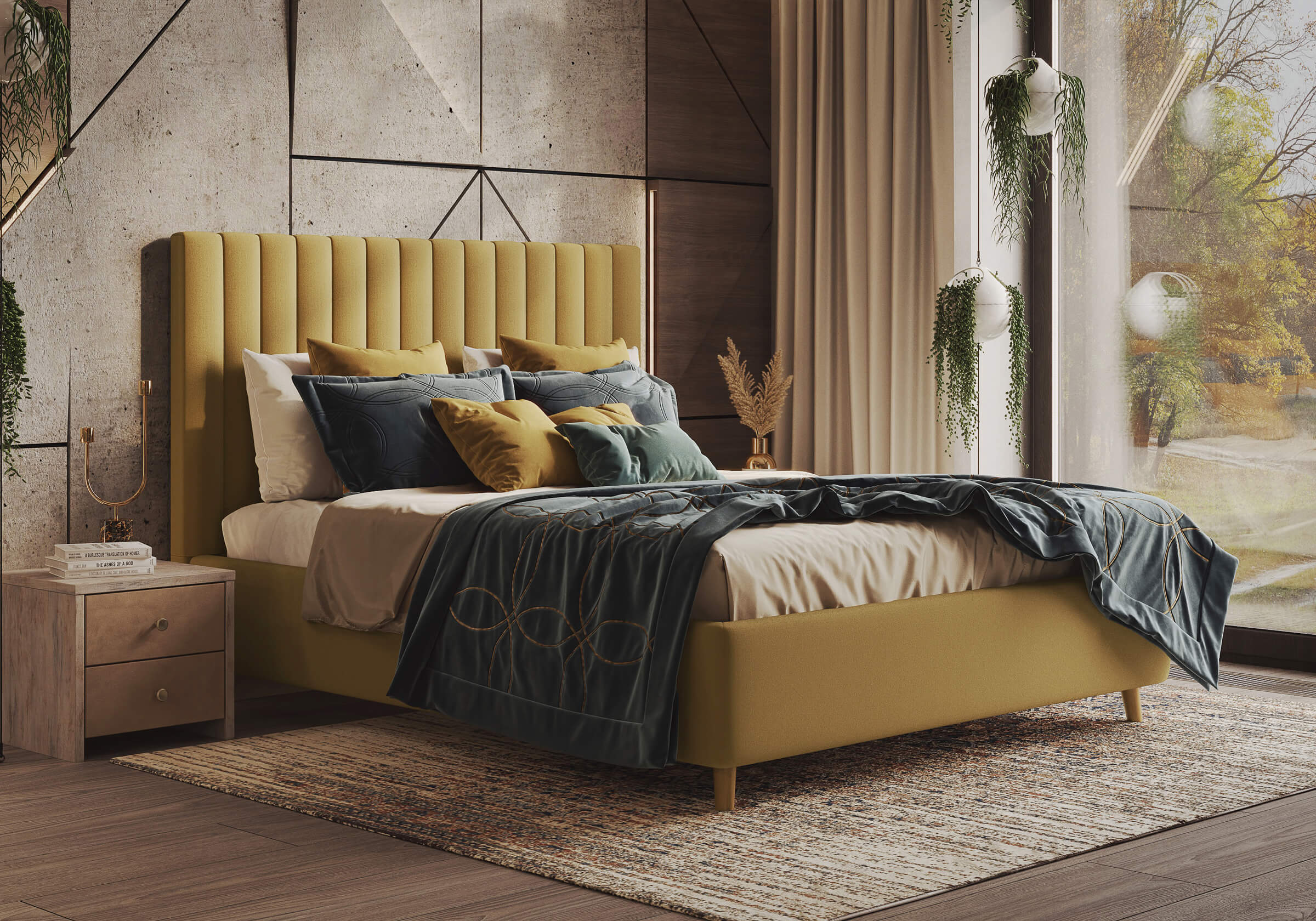 Кровать Amanda соответствует самым модным тенденциям. В зависимости от ткани обивки она прекрасно впишется в современный интерьер или интерьер в скандинавском стиле. Высокая спинка кровати с мягкими элементами выглядит эффектно, создает уют в спальне и открывает простор для смелых дизайнерских решений. При необходимости кровать может быть укомплектована разборным или неразборным металлическим основанием с ламелями, подъемным механизмом с бельевым коробом.