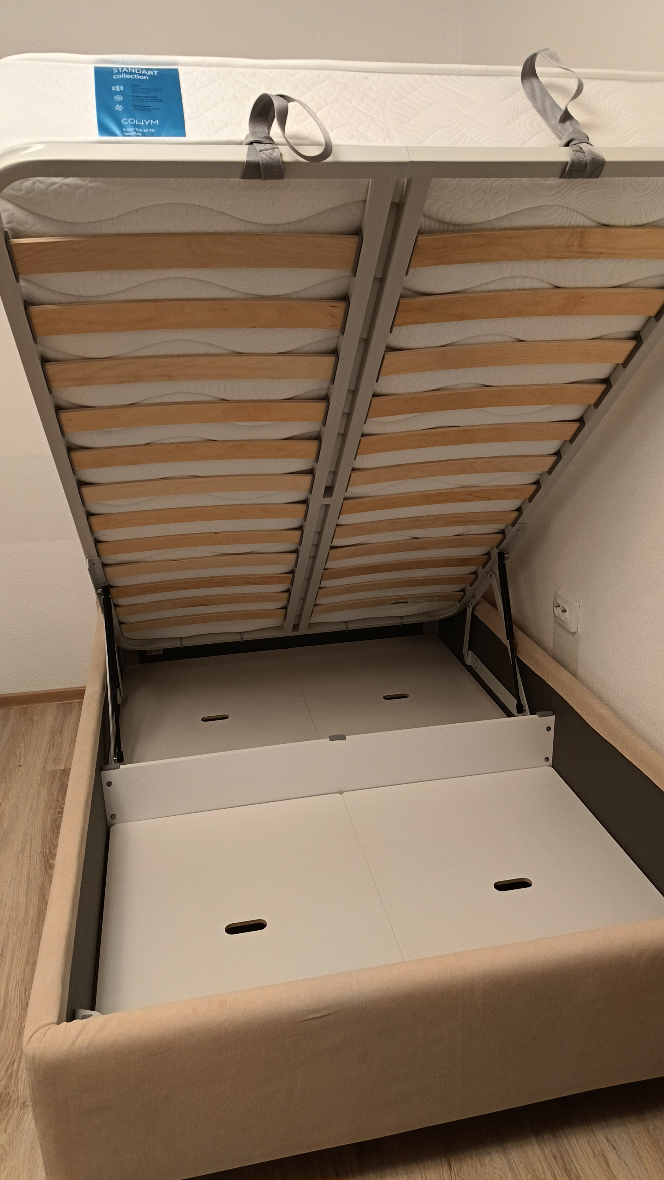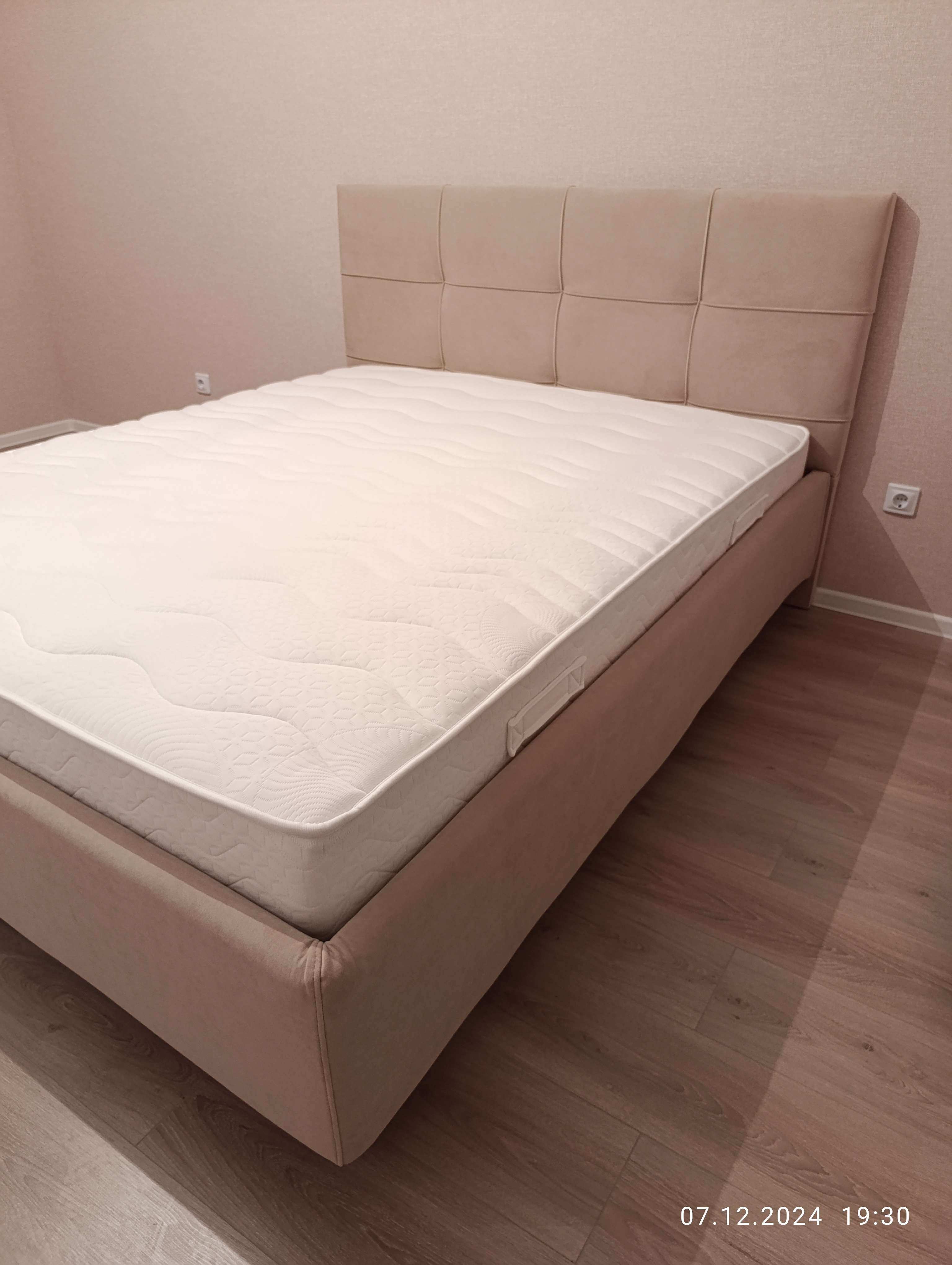 Приобрели кровать Caprice. В эксплуатации немного более месяца . Кровать очень основательная, нареканий никаких нет. Уголки основания все у кровати закрыты, нет неэстетичных стыков. Даже в недорогой ткани смотрится отлично. Опасалась, что тяжело будет самой поднимать подъемный механизм, опасения были напрасны. Единственное, наверно бы сейчас положила бы матрас 20-25 см, 29 для нас высоковато получилось.