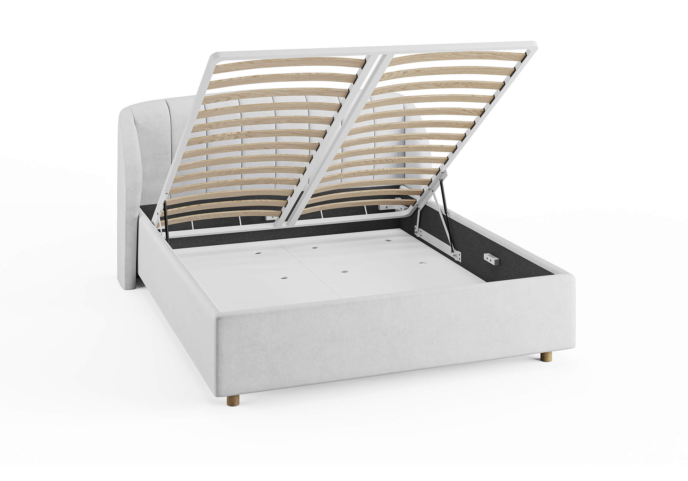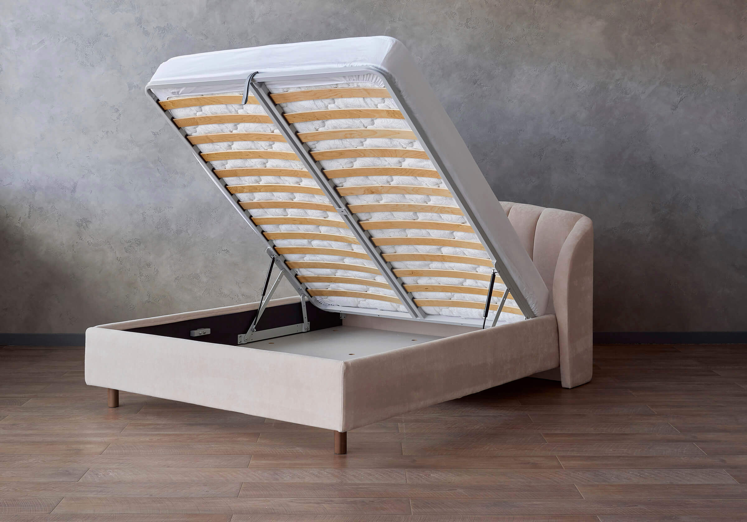 Возможна установка подъемного механизма со вместительным бельевым ящиком. Дно бельевого ящика легко сдвигается для обеспечения уборки под кроватью.