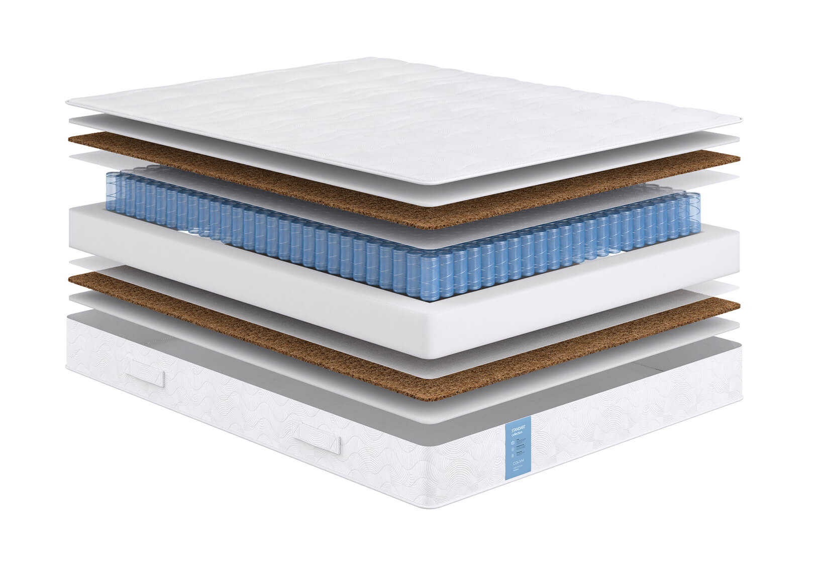 Матрас на основе блока независимых пружин Pocket, плотностью 512 пружин на спальное место, снимает нагрузку с позвоночника и качественно поддерживает область поясницы. Кокосовая койра обеспечивает жесткость, а современный гипоаллергенный материал Foam придает комфорт. Средняя жесткость матраса подойдет для широкой возрастной группы. Чехол матраса изготовлен из практичного и современного трикотажа.