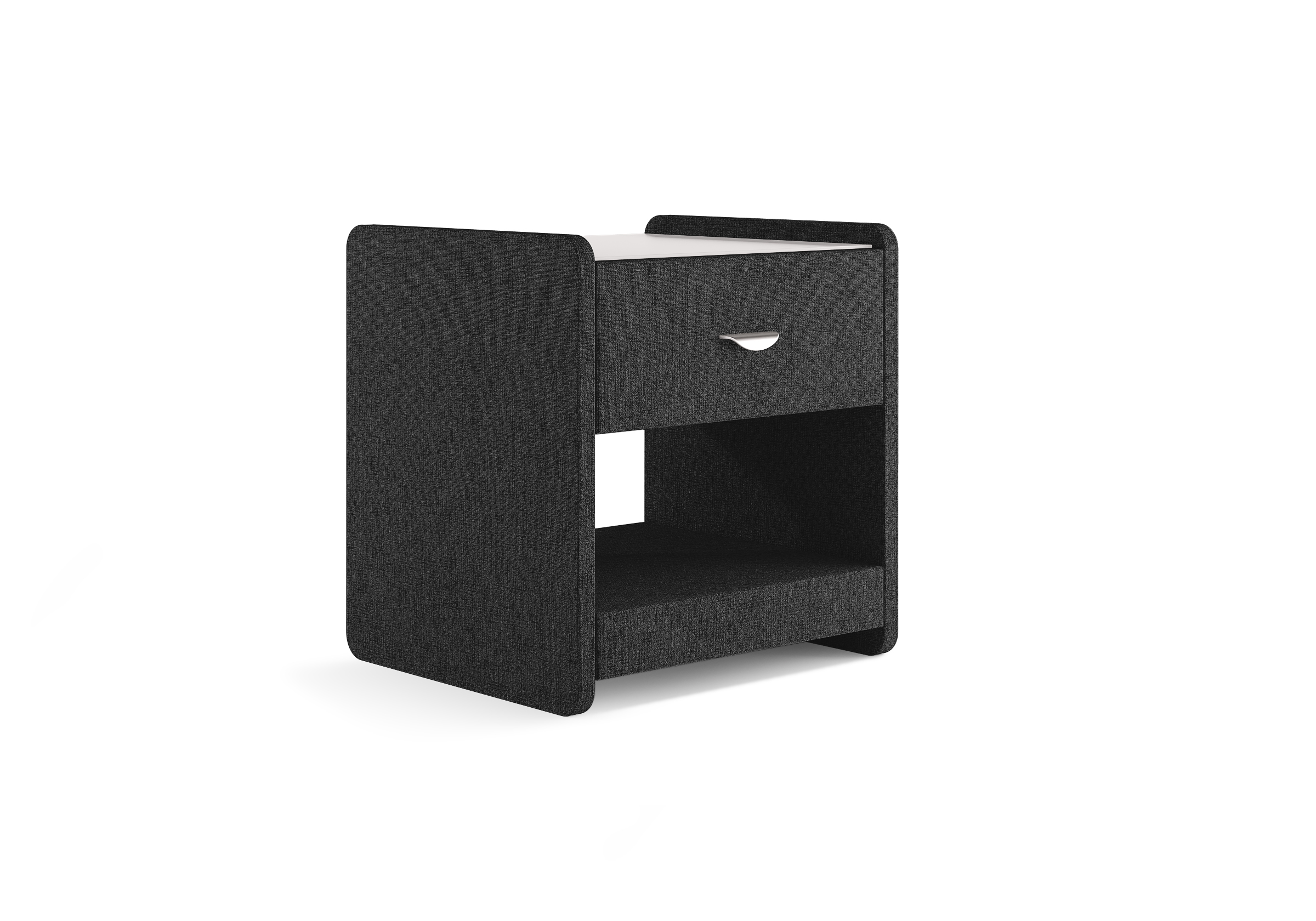 Стильная и практичная тумбочка. Ящик вместительные, кладу туда очки, книжки. Размер стандартный, удобный - 51-44-52 см. Удобная ручка на выдвижном ящике, качественная фурнитура, не скрипит при открывании. Сначала я сомневалась, брать ли тканевые тумбочки – казалось, пачкаться будут и пыль собирать. Но это не так, продавец в магазине сразу сказала заказать жидкое стекло наверх. Пятна на ней незаметны, пыли тоже нет особенно, но я на всякий случай обрабатываю пылесосом.