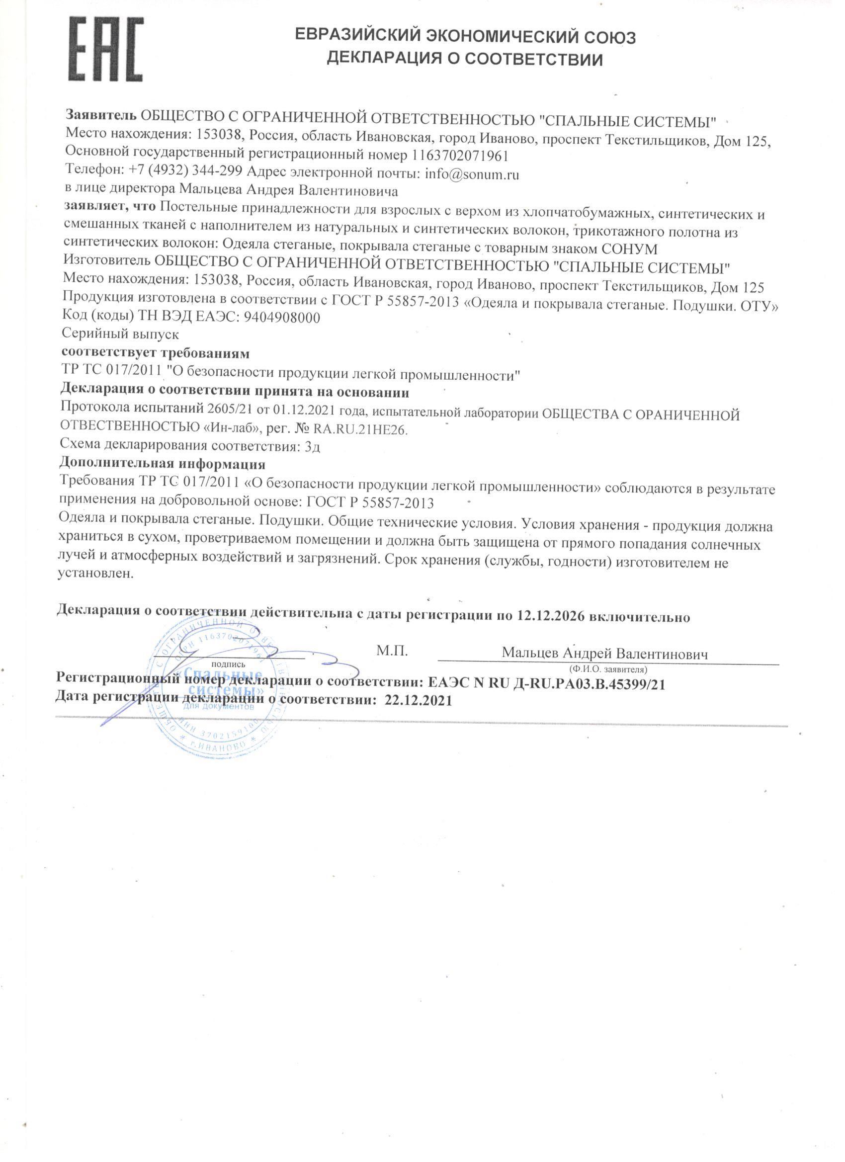 Легкое и уютное одеяло подойдет для всей семьи. Искусственный наполнитель одеяла прекрасно пропускает воздух и сохраняет тепло, создавая оптимальные условия для Вашего сна и отдыха.