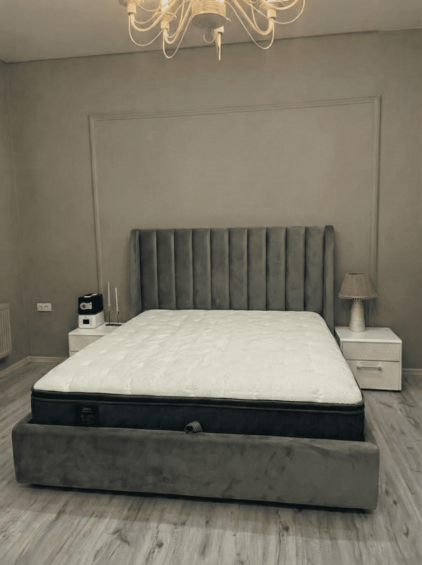 Кровать очень стильно выглядит, прям как из Pinterest, давно такую искала. Долго выбирала и остановилась на этом экземпляре. В приоритете был подъемный механизм, большой ящик, мягкая основа. И большая спинка со стороны головы. Отличная ткань, всё крепкое и надёжное. Комплектом к кровати взяли матрас. Просто идеальный, прошит аккуратно, чистый, соответствует всему заявленному, стал любимым местом семьи. Этикетка производителя на месте, всем советую такой матрас, совсем не пожалела, что купила такое спальное место.